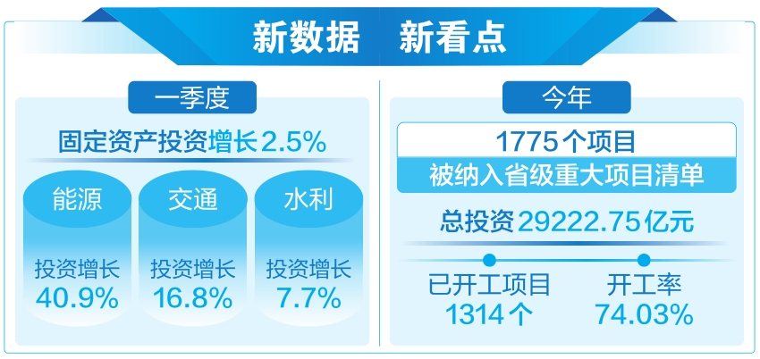 “稳”的态势在显现,“进”的动力在增强,“新”的质效在提升,“好”的因素在增加……今年一季度,我省经济运行实现良好开局,投资起到了重要支撑作用。