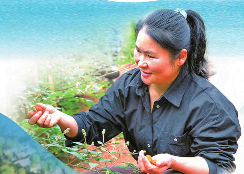 迎着晨光,开远市大庄乡桃树村委会监督委员会主任杨妃早早走出家门,来到山坡上的藤园生态采摘园了解运营情况。