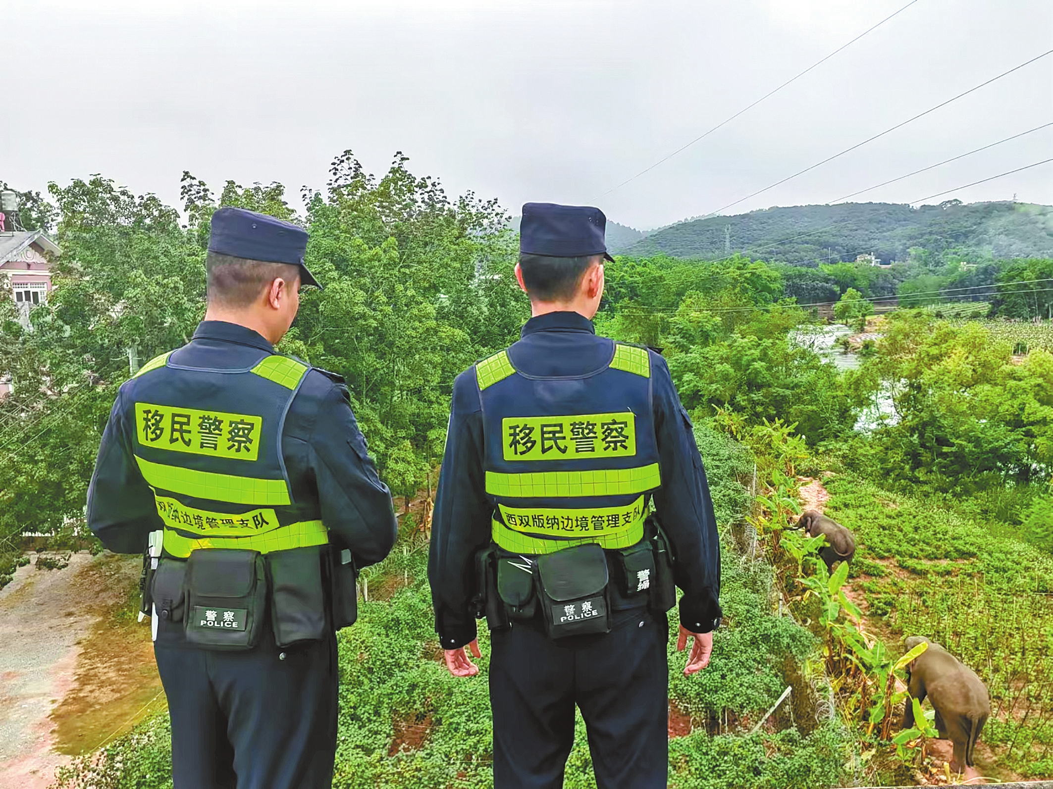 2021年8月29日,勐腊县勐伴镇农田里出现一头受伤严重的小象,勐伴边境派出所得知情况后,立即赶到现场进行紧急联合施救。民警与志愿者一边安抚小象,一边配合西双版纳亚洲象救护与繁育中心的工作人员,为小象喂食牛奶、清洗泥浆,随后又进行了消毒、打针等一系列紧急救治措施。在多方的共同努力下,小象的精神状态逐渐好转。2023年3月13日,一头野生亚洲象不慎落入深水坑,勐腊县勐满边境派出所接到报警后迅速响应,及时疏散群众,联系相关部门协同救援,最终用挖掘机挖出斜面让大象顺利上岸。随后这头约2.5吨重的成年亚洲象与象群平安回归自然保护区。