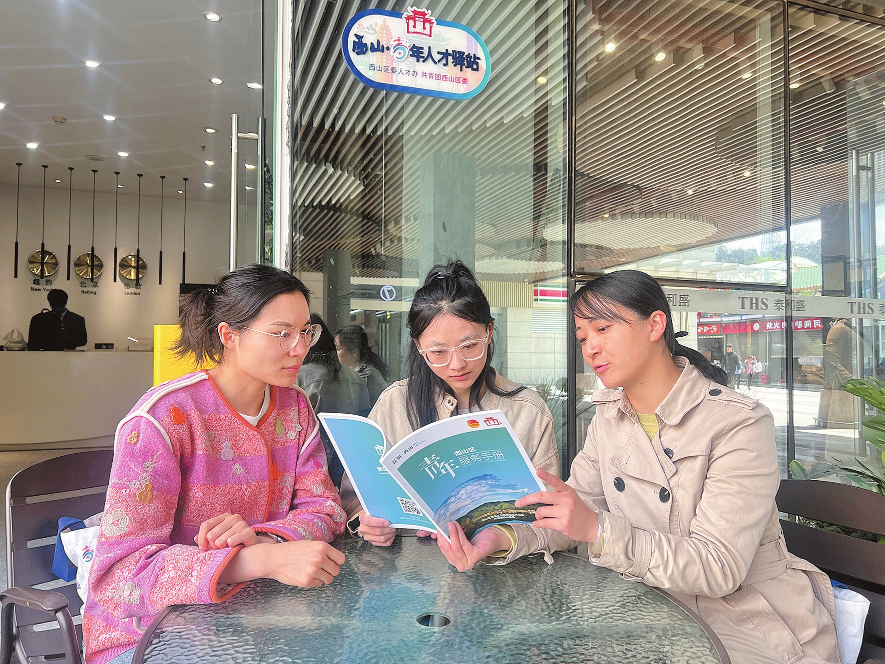 图为西山区团委志愿者向求职青年罗语岚(中)介绍服务项目。