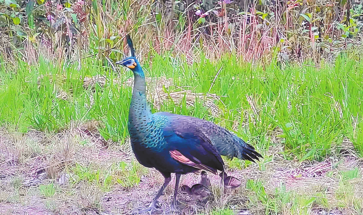 本报讯(记者 隋鑫 李春林 通讯员 李丽君) 近日,云南镇康南捧河省级自然保护区用野外红外相机捕捉到国家一级重点保护野生动物绿孔雀繁殖后代的珍贵画面。这是该保护区自2021年以来第四次监测记录到绿孔雀种群繁殖行为,截至目前共监测到7只绿孔雀。