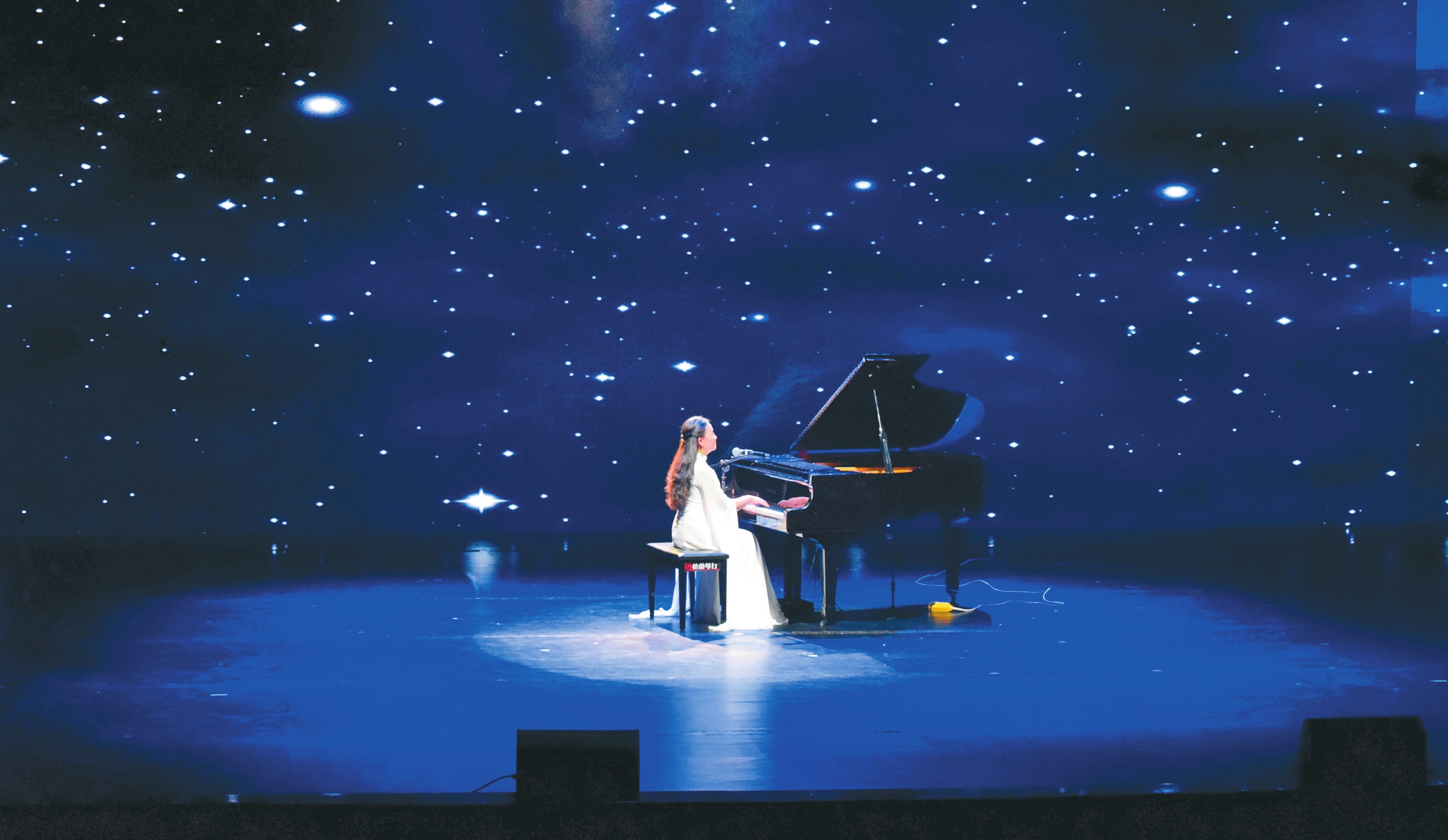 追光照在舞台中央,盲人教师肖雪娟穿着一袭白色长裙,边弹奏钢琴边用婉转动听的声线唱着:“我在寒冷的夜孤独地想,为何我与大家不一样。在长长的夜默默盼望,好想和大家一个样。”