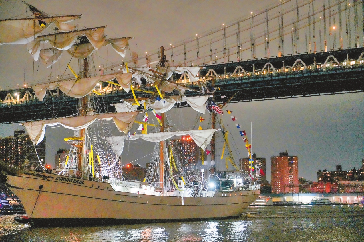 墨西哥海军“库奥特莫克”号三桅帆船5月17日晚在美国纽约市东河航行时,其桅杆撞上布鲁克林大桥,当时船上载有277人。纽约市长埃里克·亚当斯18日凌晨在社交媒体上说,帆船撞桥事故已造成两人死亡,另有17人受伤。图为墨西哥海军帆船撞桥事故现场。 新华社发 章正浩 摄