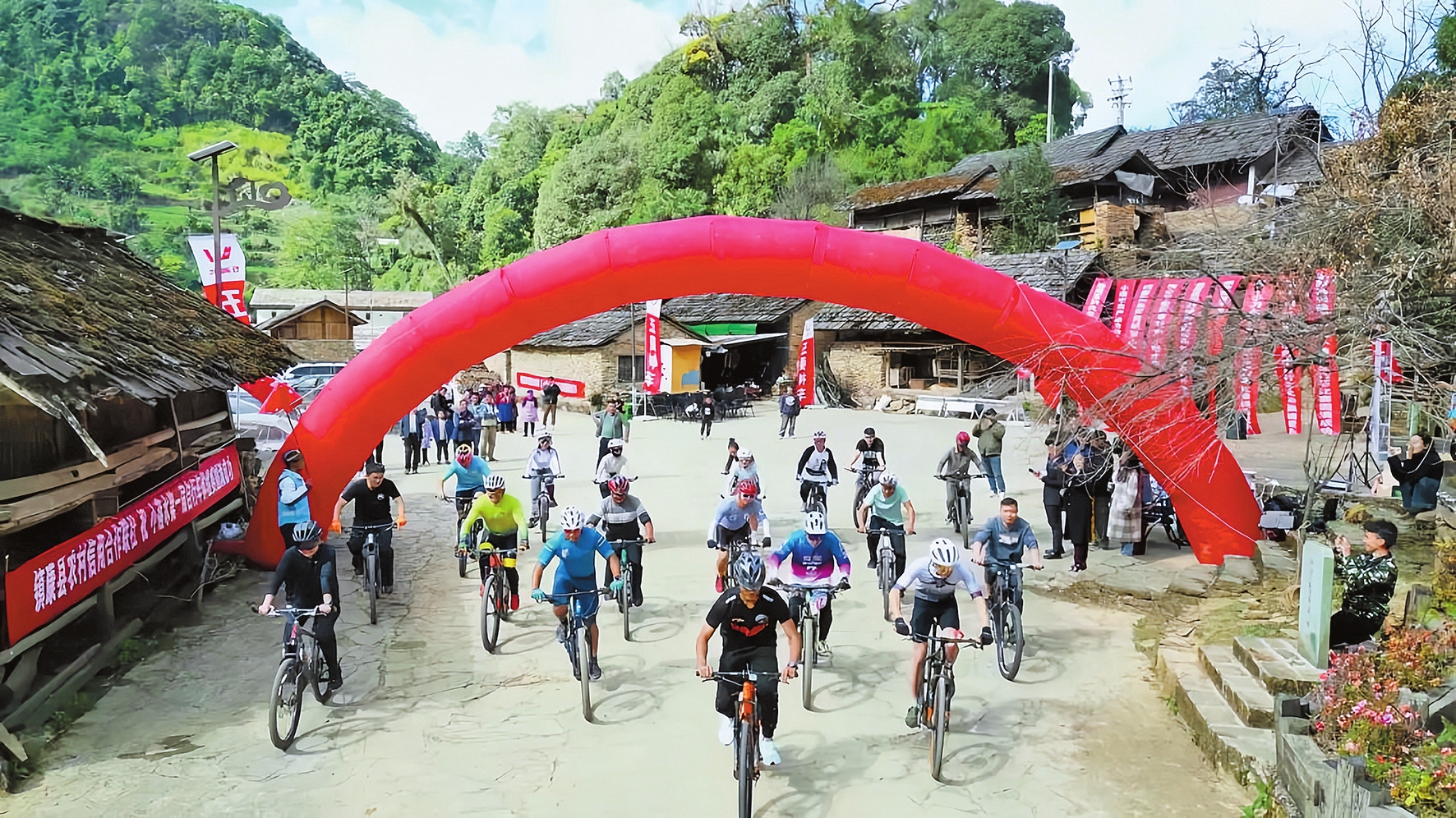 今年小落水村还举办了山地自行车挑战赛,吸引了40余名选手参赛。赛道穿过古村落、原始森林和战斗旧址,骑手们飞驰过青石板路,与云雾缭绕的山景融为一体,选手们称这里为“最野的赛道”。