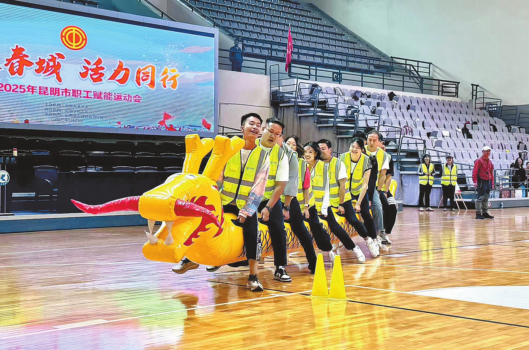 5月23日,“心跃春城 活力同行”昆明市职工赋能运动会在昆明学院举行。来自昆明市各单位8支代表队的参赛选手热情投入,在合作与竞争中释放压力、超越自我。 本报记者 陈鑫龙 摄