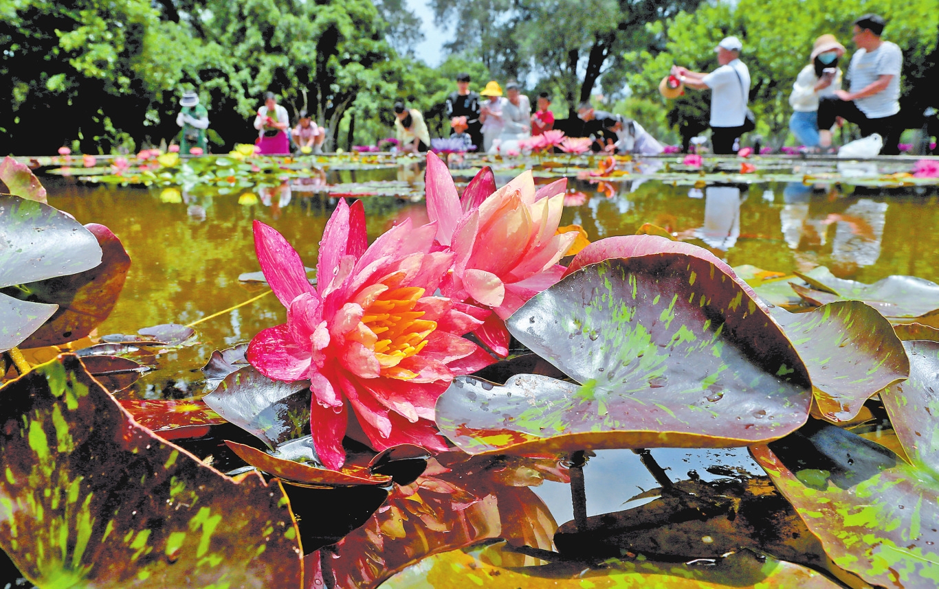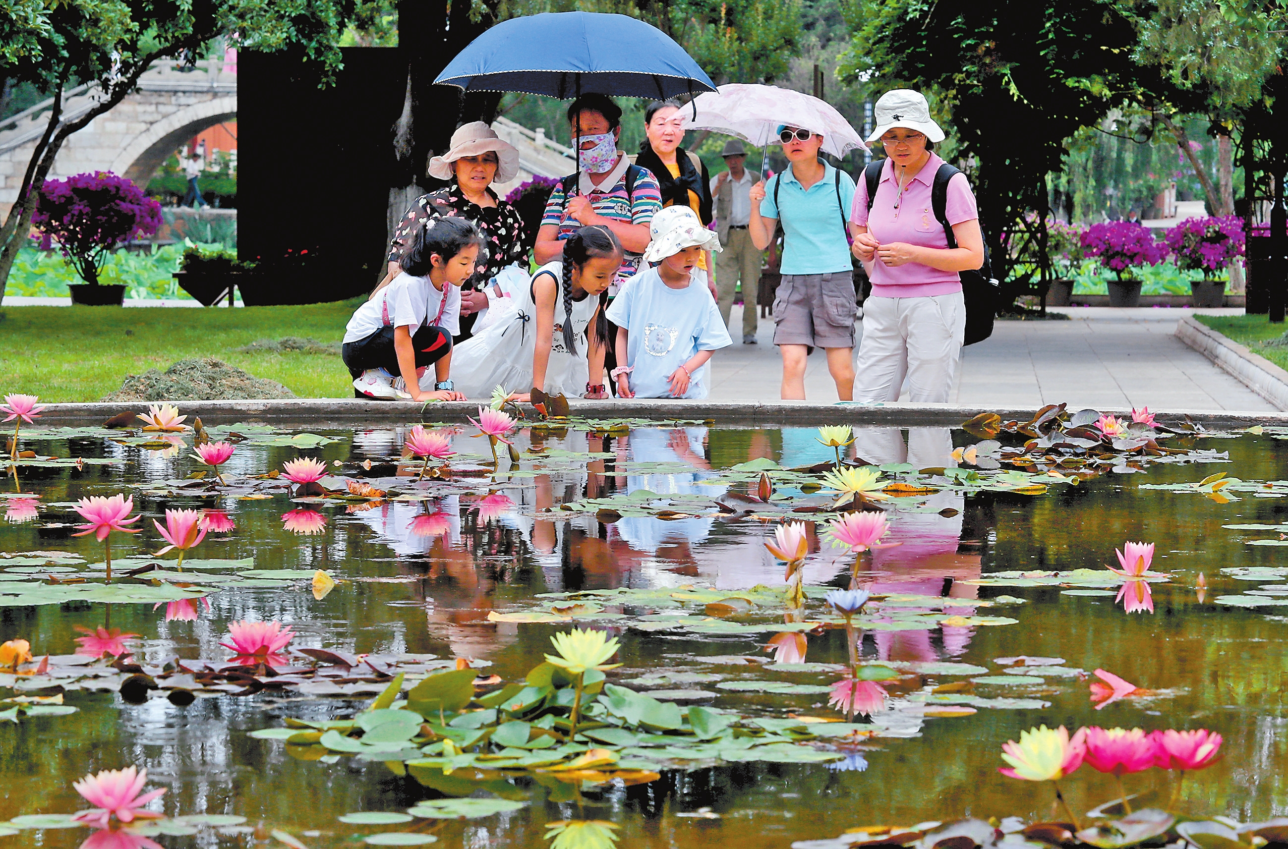 夏日,昆明大观公园的50个品种睡莲竞相绽放,黄的、白的、粉的、蓝的……吸引大量市民游人前来观赏拍照。本报记者 杨峥 摄
