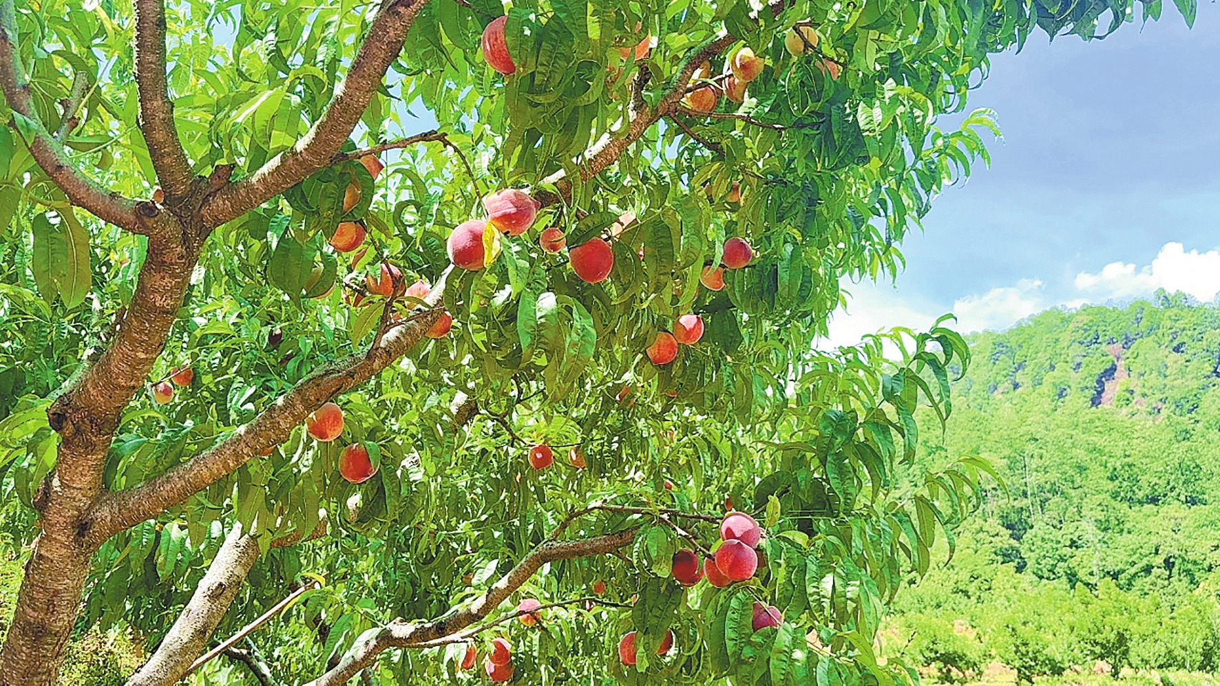 五月的华坪县永兴乡安科村,漫山桃树硕果盈枝,圆润饱满的蜜桃色泽红润,在绿叶间若隐若现。果林里,农户们提着篮子穿梭其中,熟练地采摘成熟的桃子。