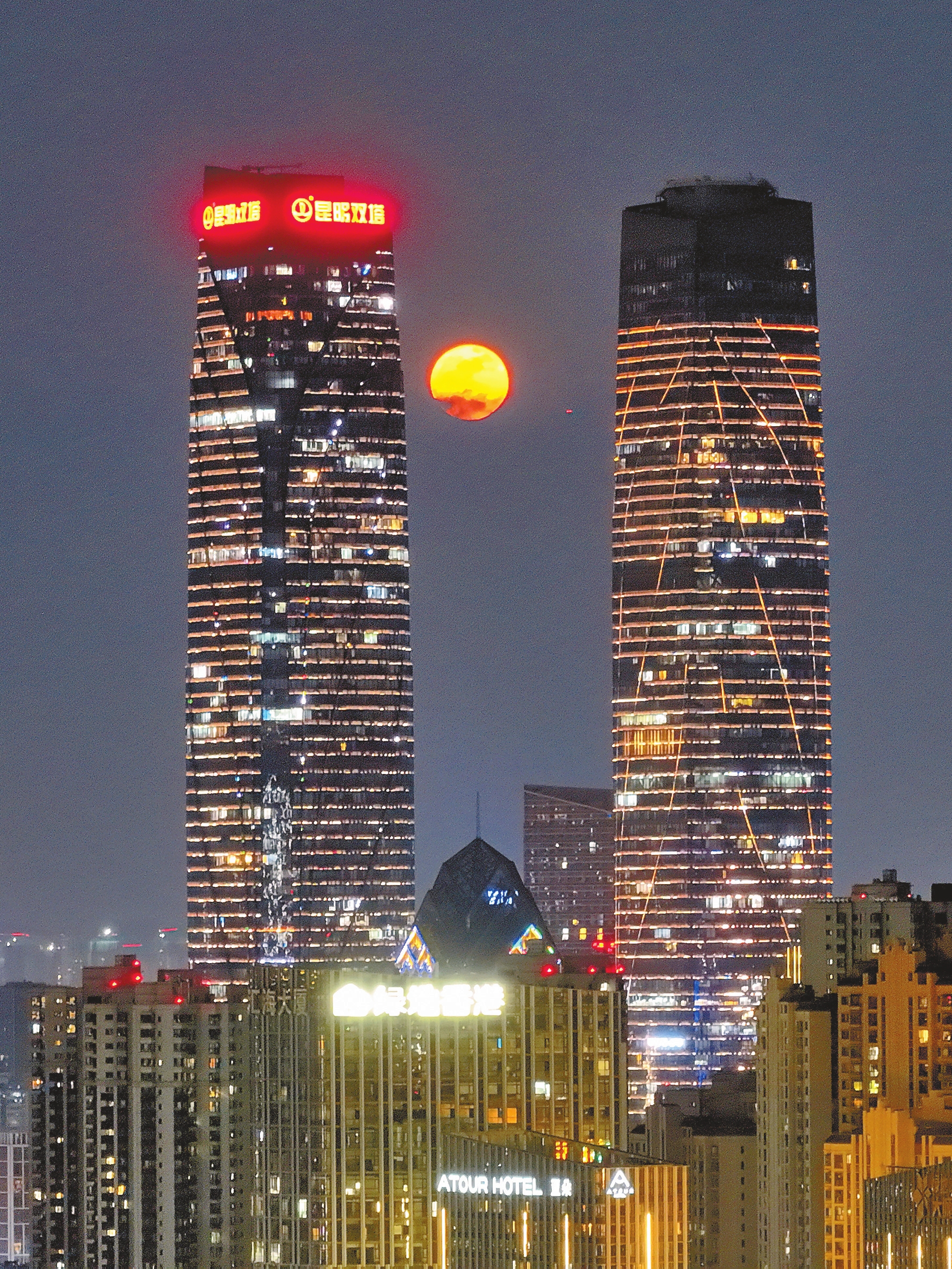6月11日,本年度最低满月现身夜空,在北半球可以看到今年离地面最近的满月。每个月的望日,月亮在天空中的最高点被称为上中天。6月11日的满月是今年上中天高度角最低的一次。图为在昆明拍摄的最低满月。