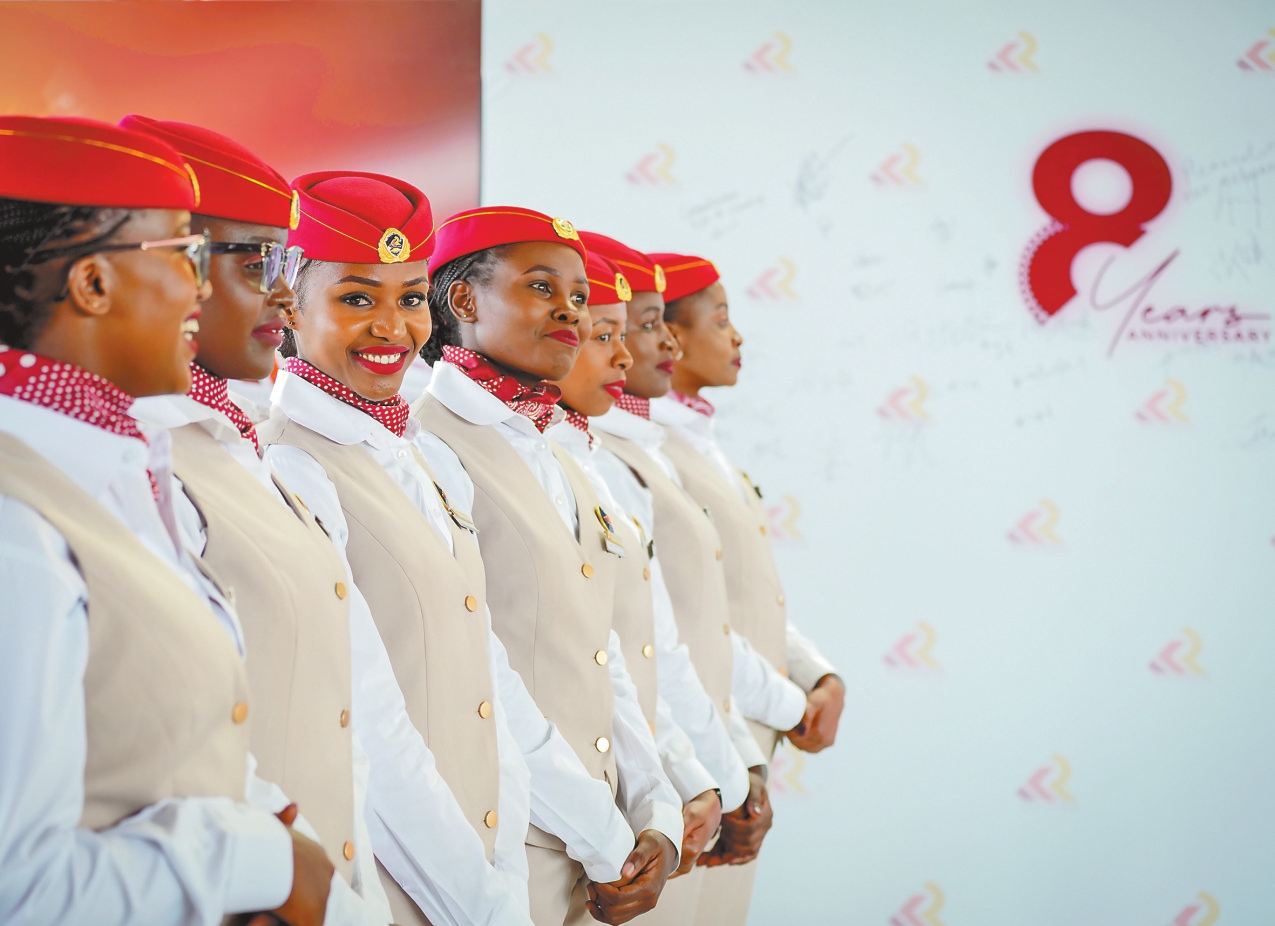 肯尼亚标轨铁路安全运营八周年纪念活动6月10日在肯尼亚首都内罗毕举行。肯尼亚标轨铁路由中国路桥工程有限责任公司设计建造,是肯尼亚独立以来最大的基础设施建设项目。该项目包括蒙内铁路、内马铁路一期全线,全长共592公里,是一条全部采用中国标准、中国技术、中国管理、中国装备建造、中国运营维护的国际干线铁路。截至2025年5月31日,肯尼亚标轨铁路开通累计运送旅客1534.2万人次,累计运输货物4039.6万吨。图为铁路工作人员参加纪念活动。 新华社记者 李亚辉 摄
