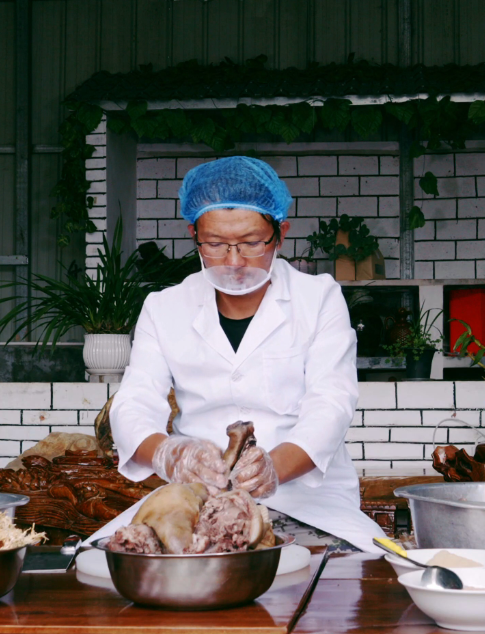 段熊在腌制酸肉。 本报通讯员 周应彪 摄