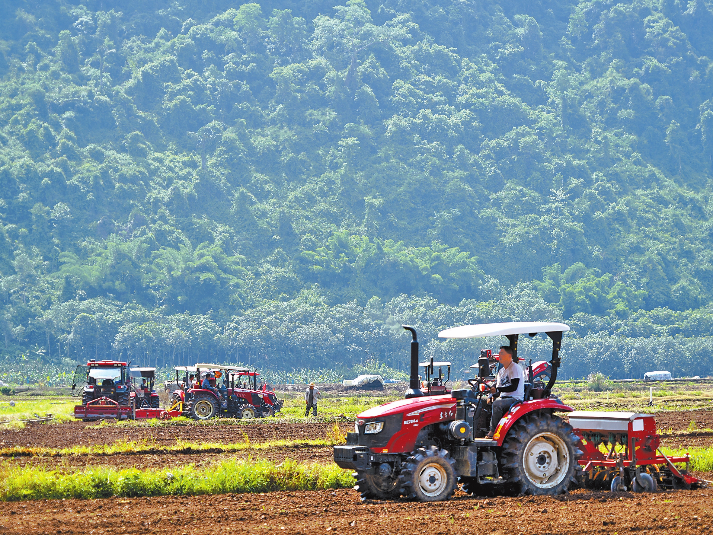 近日,勐腊县勐仑镇千亩旱稻有序开播,稻田间,多台精量播种机轰鸣作响,农户们抢抓农时忙播种。“采用机械化方式播种不仅省工省时、节水节肥,还能增产增效,每亩地可节约成本200元左右。”勐仑镇景岗村小组组长岩庄说,今年景岗村完善灌溉沟渠、田间道路等基础设施,在千亩旱稻核心示范区运用“智慧旱稻”种植模式提升农田综合生产能力,单日播种效率可达200亩以上。