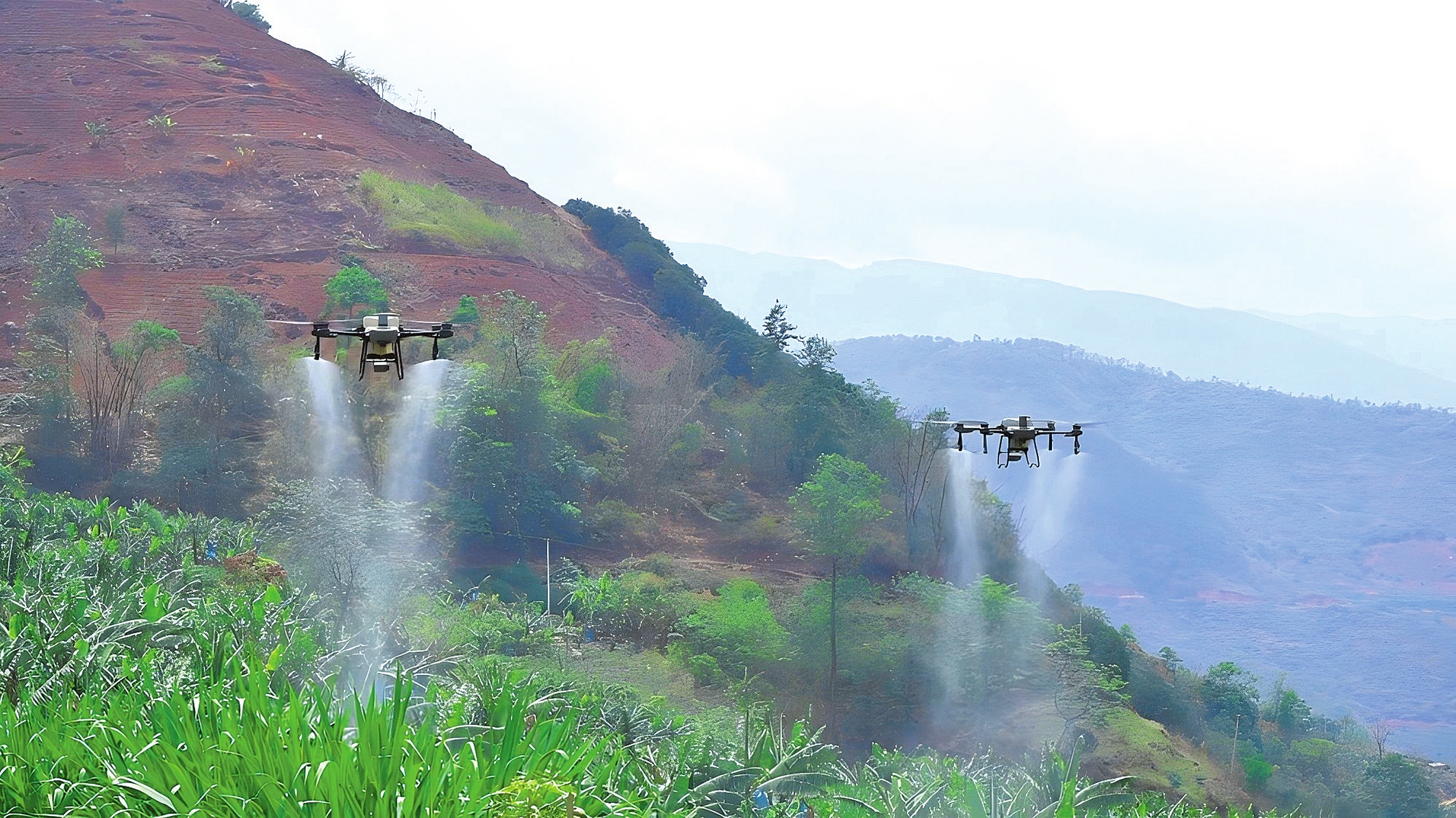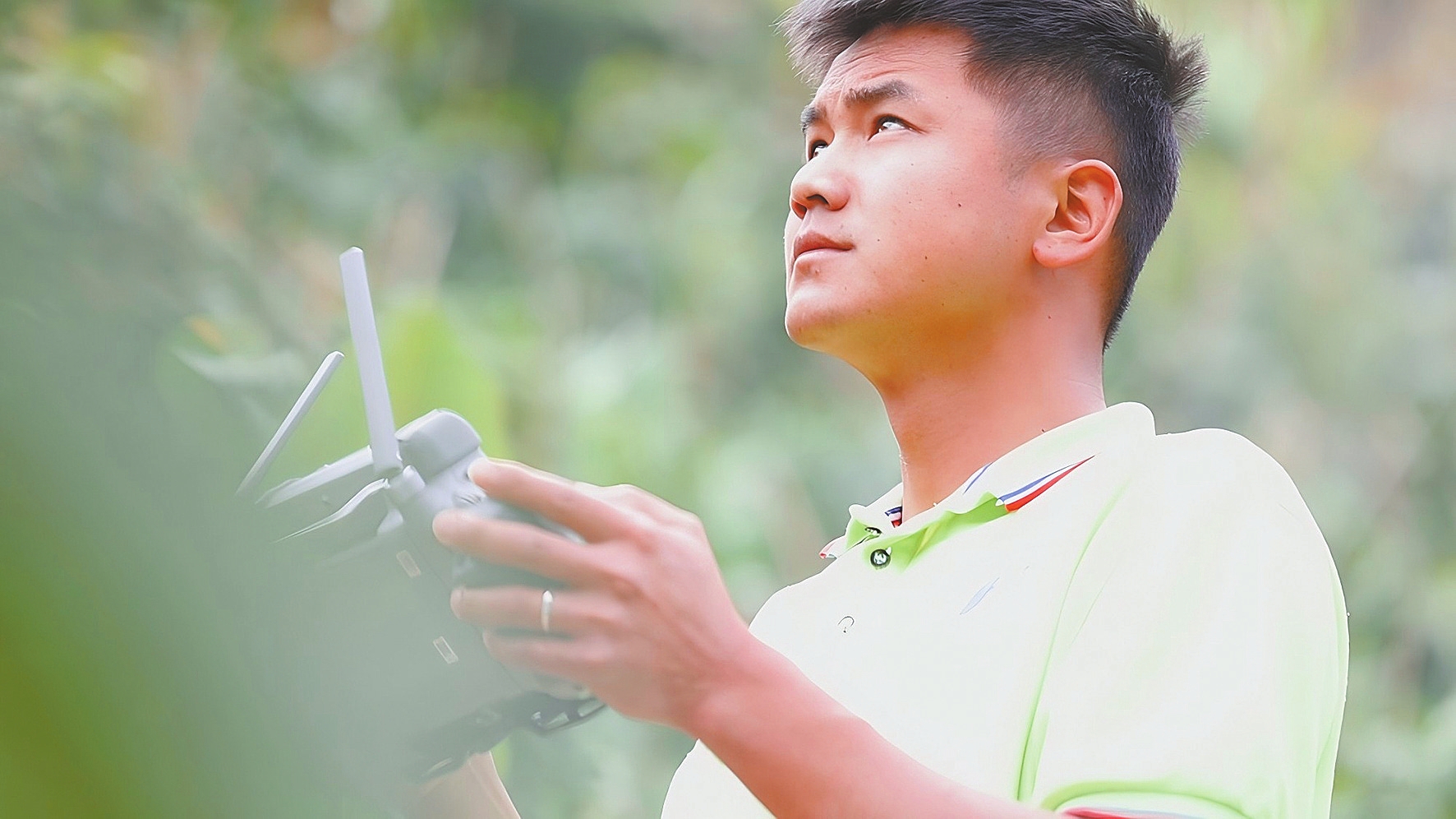 香蕉防虫时节,太平镇等子村“00后”小伙杨联航一大早就带着自家的无人机,来到香蕉地喷洒农药。“刚才我对这块地进行了无人机飞行规划,现在可以进行全自主飞行,喷洒农药时既不会重喷,也不会漏喷,非常省心。”杨联航说。