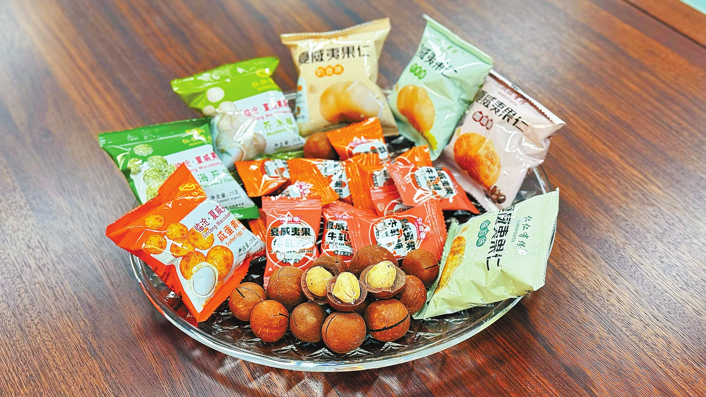 作为本土坚果加工企业的代表,众裕农业开发有限公司不仅种植鲜果,还生产开口笑、坚果仁、坚果糖、坚果油等产品。公司副董事长马永卫介绍,相比澳洲坚果,临沧坚果从采摘到加工全流程都把控品质,且更及时高效。