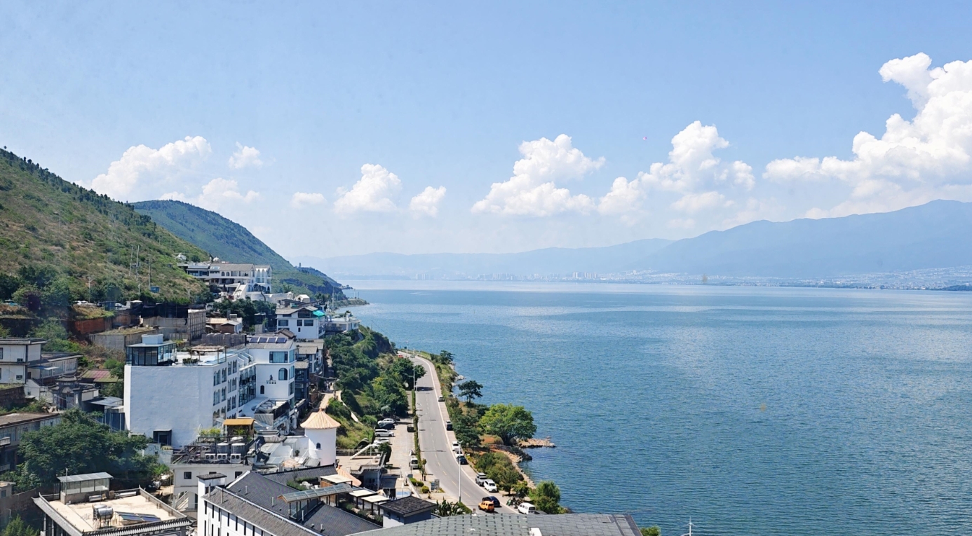 清晨,温暖的阳光洒在文笔村蜿蜒的彩虹路上,路旁的夕地咖啡馆已开门迎客。透过巨大的落地窗远望,洱海泛着细碎金光,苍山在云雾中若隐若现。夕地咖啡馆店主李东翰来自丽江,10年前他第一次来到这里,就被这片山海风光深深吸引。如今,他的咖啡馆因绝佳的观景视野已成为热门打卡点,也见证了文笔村从传统渔村到网红村的华丽蜕变。