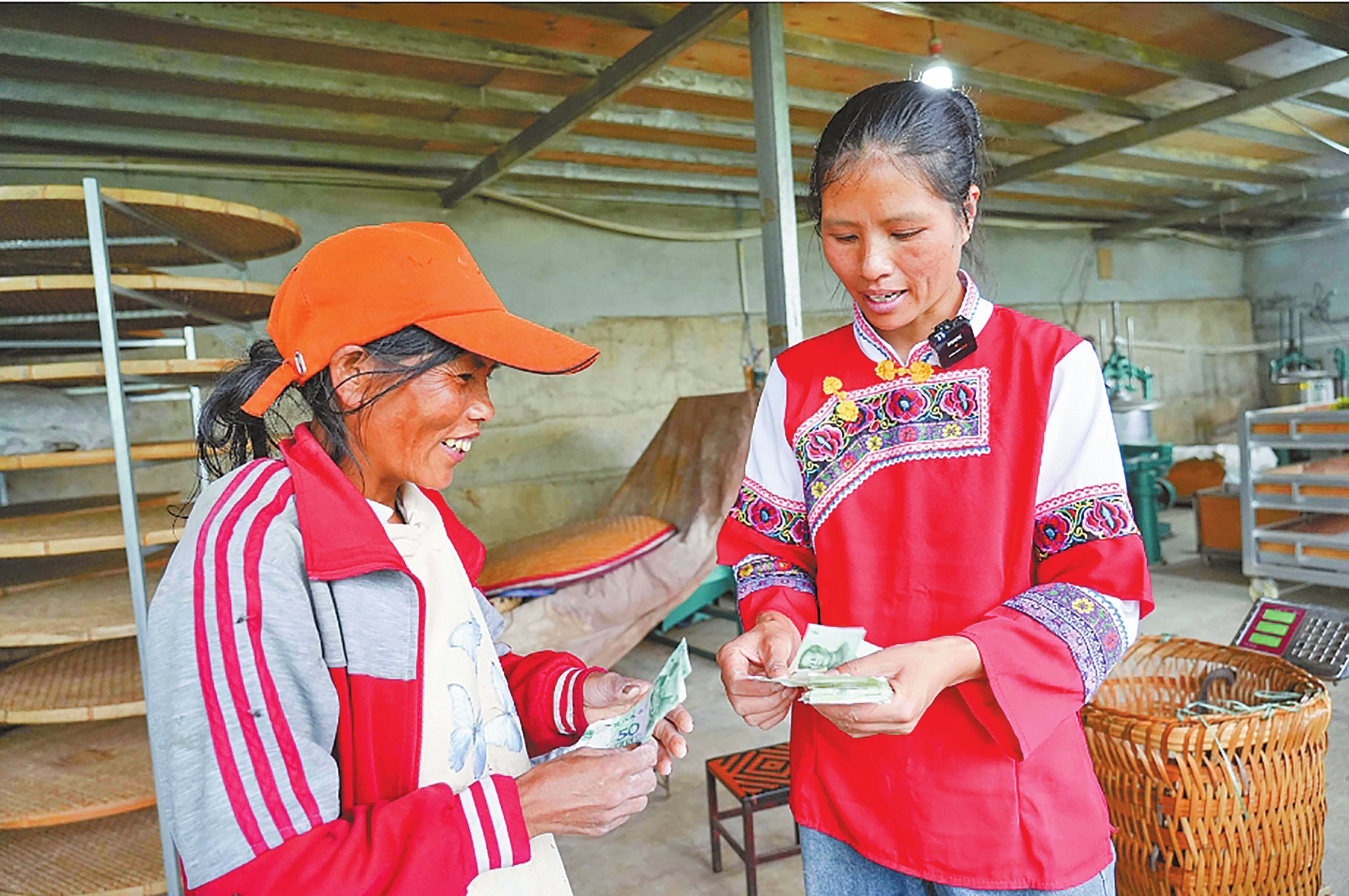 在泸水市老窝镇崇仁村的海梅茶场负责人何淑张的家中,院子里满是金黄的玉米。糍粑生产车间内,新出炉的糍粑热气腾腾,工人们手脚麻利地打包装箱。
