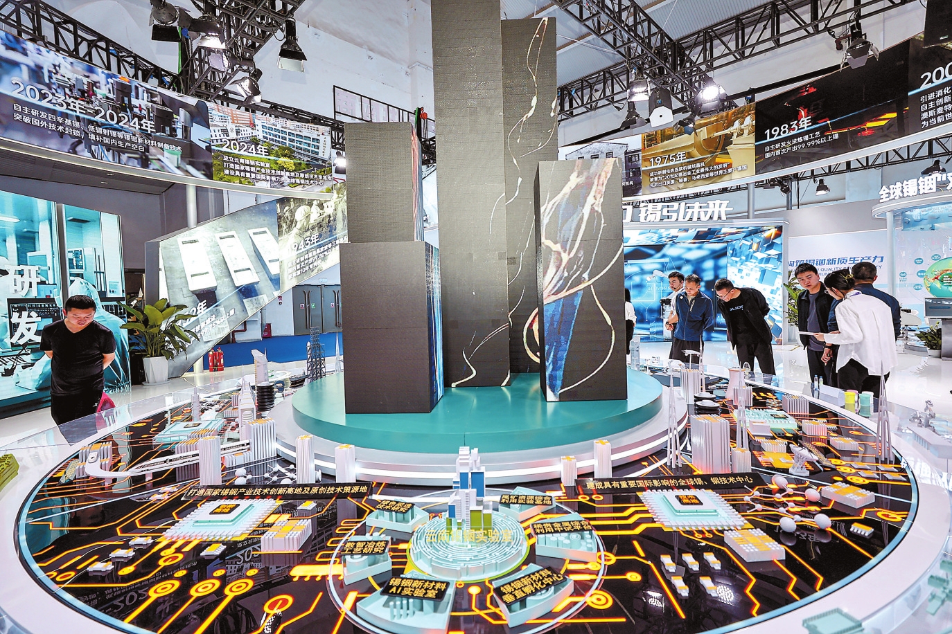 制造业馆突出“世界一流、中国领先、云南特色”特点,聚焦有色及稀贵金属、通信和电子信息、先进装备制造等领域,集中展示工信发展最新成果。52家参展企业中,有世界500强、中国500强,也有国家级专精特新“小巨人”、国家级高新技术企业和上市企业。
