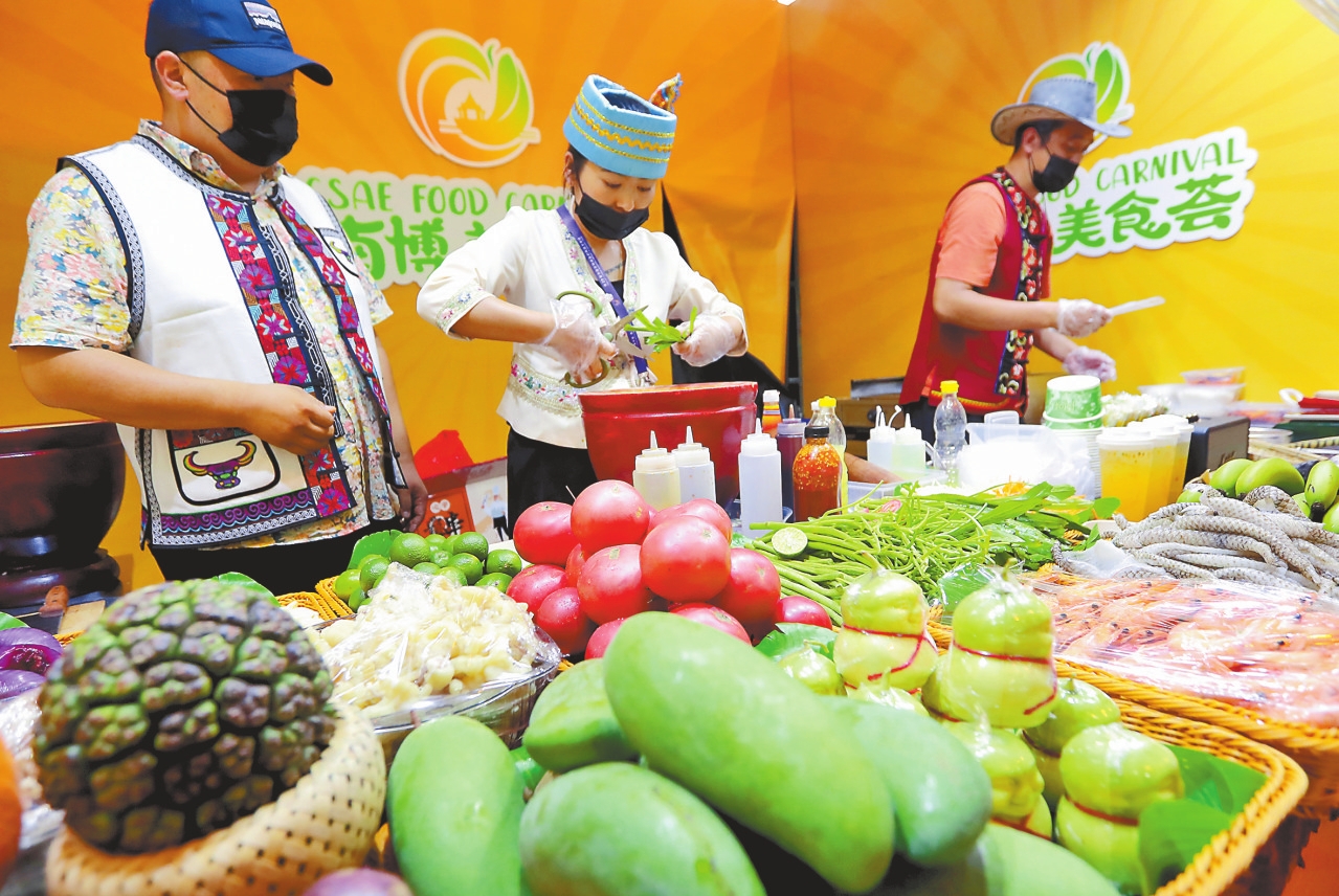 行走在美食长廊中,移步换景、滇味随行。作为滇式传统面食的破酥包,嘉丰餐饮滇菜大师蒋彪在糖腿破酥包的基础上,创新研发出云菌破酥包、玫瑰糖破酥包、酱肉破酥包等新品。“这是我首次来到南博会参展,我们希望将好吃又健康的云南美食介绍给中外客商。”嘉丰餐饮有关负责人汪济君表示。此外,来自丽江金生丽水的板菜红豆鲍鱼套饭,用干板菜为原材料烹制红豆鲍鱼,将红豆的豆香、鲍鱼的鲜香融为一体;香格里拉敏珠拉姆藏餐厅的牦牛肉面片传递着雪域高原的粗犷;文山土鸡米线则用慢火熬制,金黄鸡汤飘香,吸引不少市民的关注。这些风味美食,不仅是地理味觉的表达,更是多民族文化的共生,共同绘制出一幅“一域一味”的云南美食图谱。