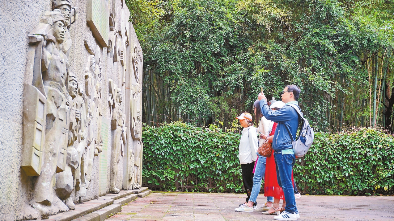 游客参观国殇墓园浮雕墙。 本报记者 杨艳鹏 李建国 摄
