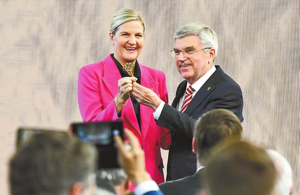 交接仪式开始后,现场大屏幕播放了一个短片,呈现了巴赫赢得1976年蒙特利尔奥运会击剑冠军和考文垂在2008年北京奥运会勇夺游泳金牌的经典画面,还回顾了巴赫过去12年带领奥林匹克运动走过的重要历程。