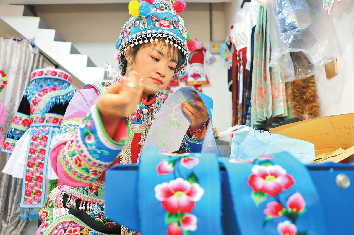 漾濞县鸡街乡“00后”绣郎张启诚努力传承和创新彝族刺绣,将其推向更广阔的市场。“童年时,奶奶每次刺绣都会给我讲解图案背后的故事,比如太阳纹象征光明等。奶奶还教会我彝绣的基本针法,10岁时我就能独立完成一件简单作品。”张启诚说,作为漾濞县彝族刺绣非物质文化遗产代表性传承人,他注册成立了云南一剪一绣非物质文化传播有限责任公司,带动180余位绣娘增收。“我们通过‘一剪一绣’销售,增加绣娘的收入。现在,我们绣娘的平均收入为800元到2000元一个月。”