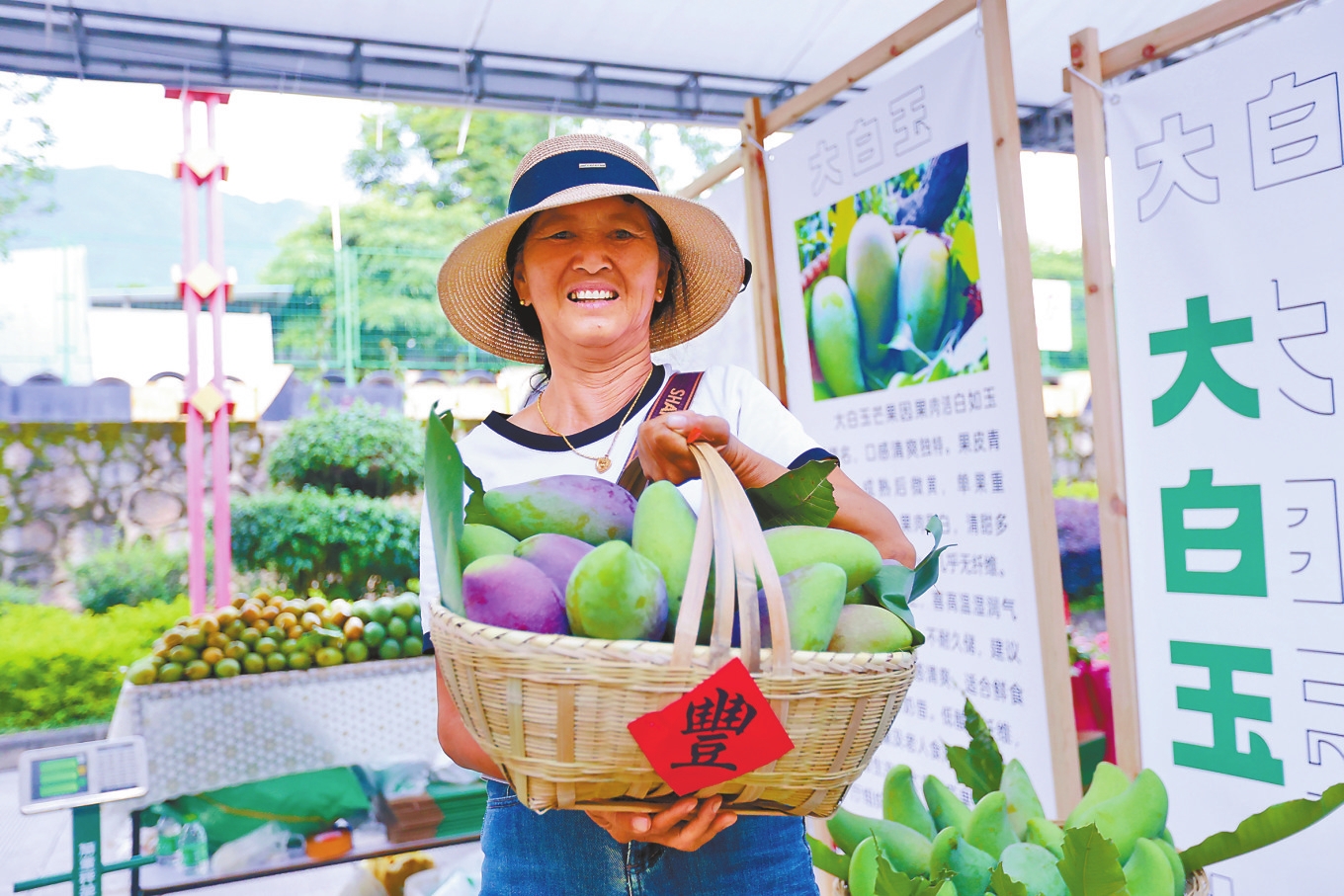 6月27日,2025年永德芒果之乡文化旅游节启幕。本届芒果节持续至7月14日,其间将开展特色芒果展销、“芒果王”评比、趣味吃芒果大赛、文艺晚会、万人打歌狂欢晚会等丰富多彩的活动,展示永德的自然风光与人文魅力。图为农户展示芒果。