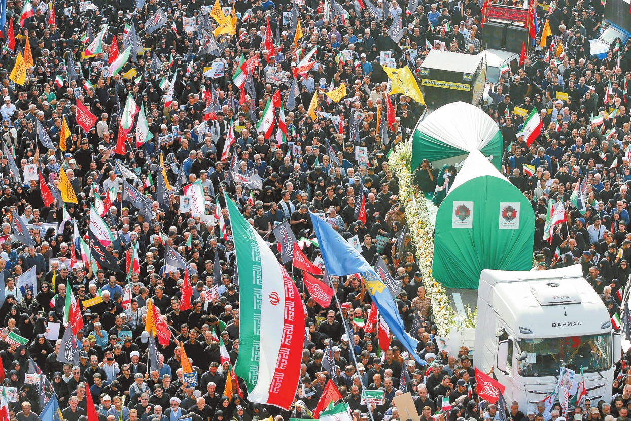 参加仪式的人群沿着革命广场和自由广场游行,手举遇难军事指挥官和核科学家的照片,其中包括伊朗伊斯兰革命卫队总司令萨拉米、伊朗武装部队总参谋长巴盖里、伊朗伊斯兰革命卫队航空航天部队司令哈吉扎德等。人们在仪式现场挥舞着伊朗国旗,并高喊反以色列和反美国的口号。