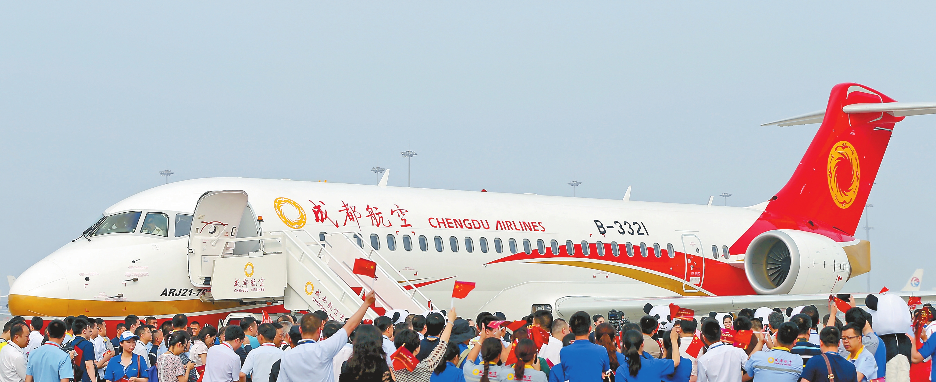 2025年6月28日,国产支线客机C909商业运营九周年。截至目前,C909共交付市场166架,累计运营700余条航线,运送旅客超2400万人次,海外运营客户达3家。图为2016年6月28日,首架C909投入商业运营。在成都双流国际机场停机坪上,工作人员欢送即将起飞的C909。新华社记者 丁汀 摄