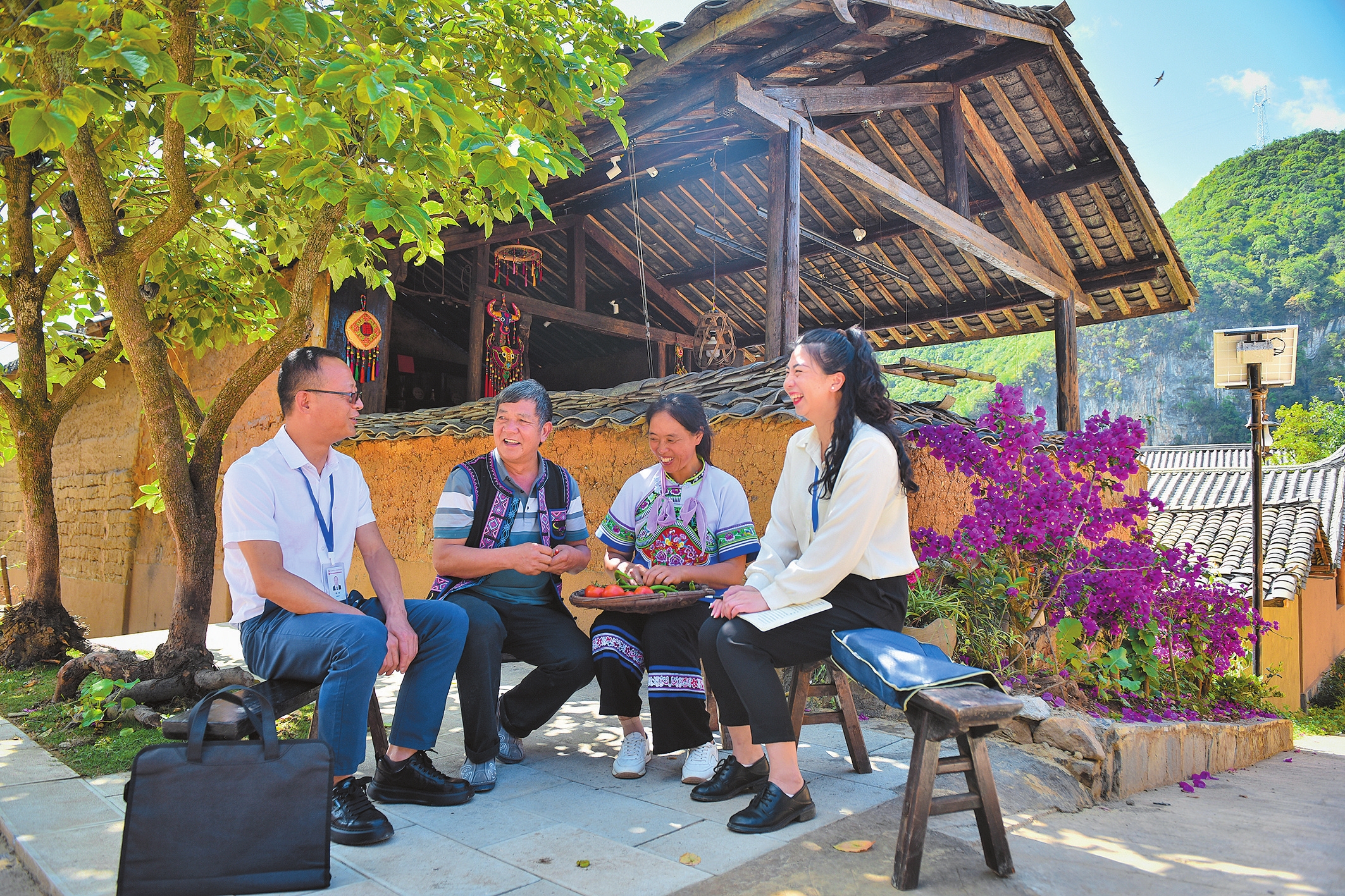 马关县纪委监委组织纪检监察干部下沉基层一线,聚焦惠民惠农政策落实、乡村振兴产业项目建设等情况开展监督检查。图为该县纪检监察干部近日在大栗树乡腊科村了解相关情况。