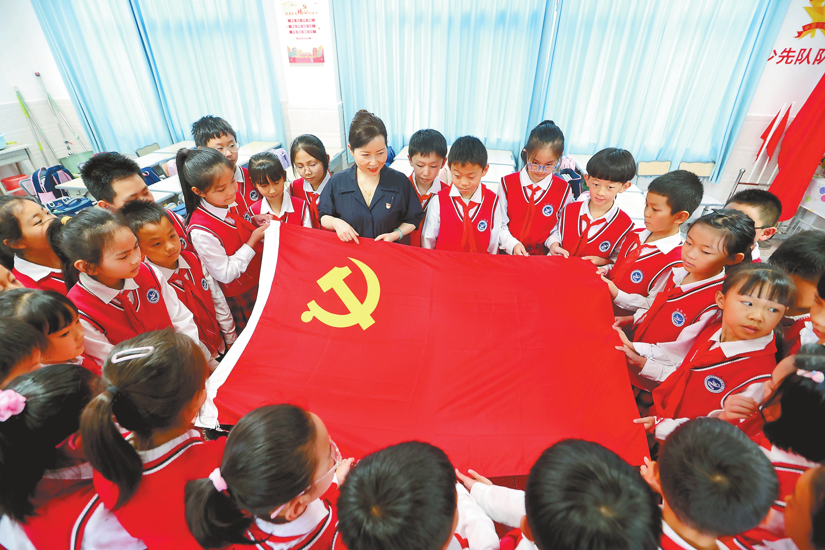 6月30日,昆明市海源小学开展红色教育润童心活动,迎接“七一”。学校通过组织学生认识党旗、讲述党旗故事、跟党旗合影等方式引导孩子厚植爱党爱国情怀。