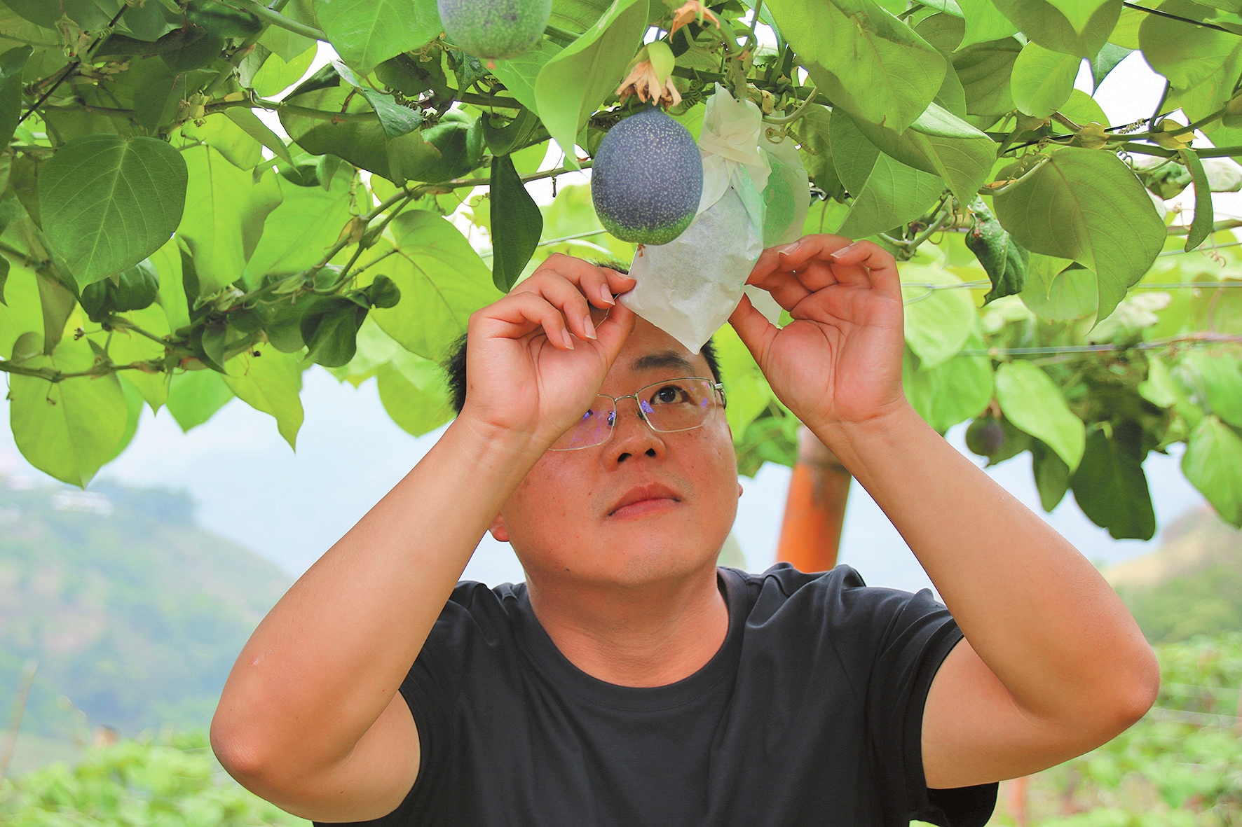“从种苗入土那天起,我们的心就一直悬着。会不会成活、爬藤、开花、结果?结果后风味如何?关关难过,关关都要过。”回忆起热情果试种过程,张拓记忆犹新。面对全新的种植品种,由于缺乏经验,他们遭遇了药物抑制生长等难题,走了不少弯路。