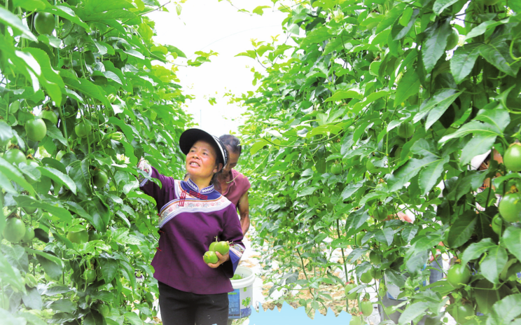 高良乡2022年开始发展百香果产业,至2023年种植规模达400余亩,产值超过200万元,为160余名农村劳动力创造了就地就近就业的机会,人均年增收1万元以上。2024年,争取沪滇资金80万元,实施高良乡黄金百香果产业发展建设项目,种植规模300亩,亩产约1000公斤,带动周边农户182户812人就近务工,实现户均增收1.2万元以上。2025年,争取沪滇资金460万元,实施高良乡百香果种植产业配套建设项目,种植规模600亩,惠及脱贫户99户431人,人均劳务报酬每月3000元以上。