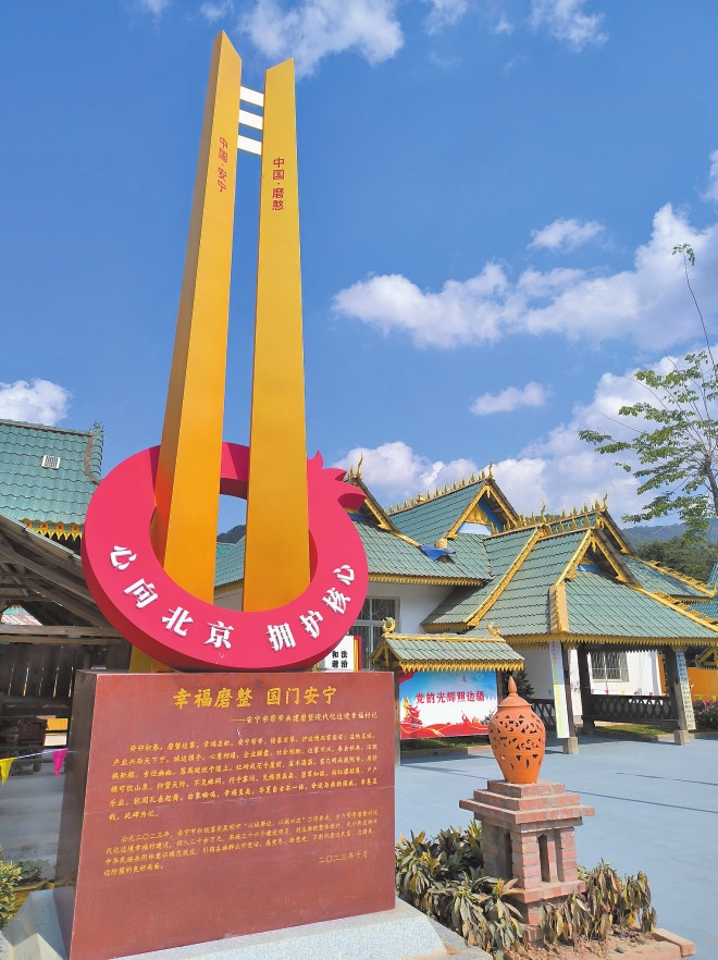 “五华携磨站,同心筑边寨”“青松映西山,茶海幸福长”“官渡曼庄,同心同行”“龙腾古寨,幸福尚冈”……在磨憨镇尚勇村委会磨站村民小组的广场上,一幅幅对比图,生动展现着昆明“五区一市”因地制宜帮带共建给边境村寨带来的喜人变化。