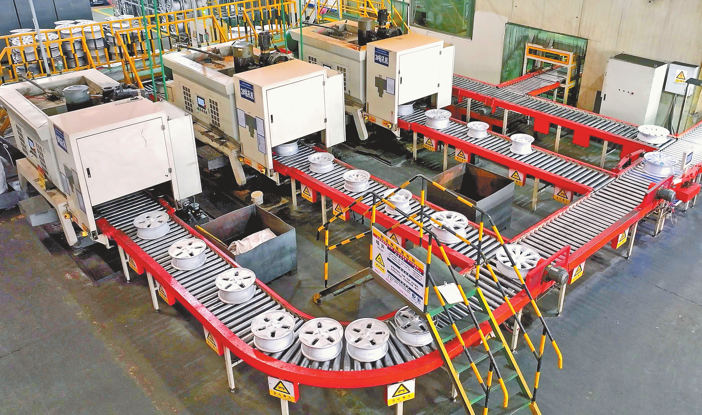 自去年下半年以来,云南富源今飞轮毂制造有限公司加大投入,对车间实施智能化改造,引入自动化机加工数控机床、机械手集成柔性输送线等先进硬件设施以及图像判别、二维码打标系统等软件,实现了生产设备的提档升级。该公司汽轮主机工厂厂长张锋烽介绍,车间原先是一人两机,通过提升改造后是一人四机,生产效率提升了将近50%。应用自动化与数字化技术后,相同数量的15组机床仅需4人监控与管理,人均负责机床数量从1组增至7.5组,单机生产能力从260件提升至近500件,为企业降本增效注入了强劲动力。