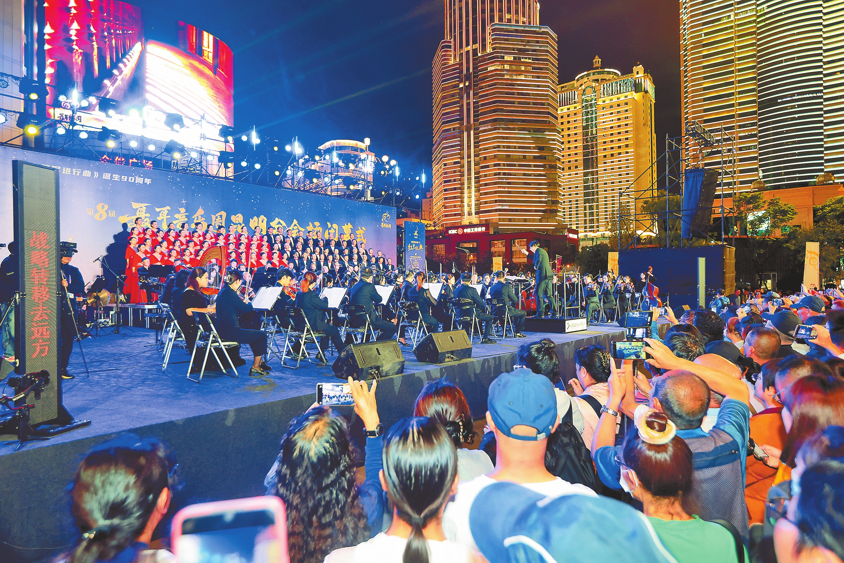 同时,第八届聂耳音乐周昆明分会场闭幕式在东风广场举行。由昆明聂耳交响乐团、澳门管弦乐团等230余人组成强大阵容团队,联袂演绎气势磅礴的《长征组歌》等经典作品,传承爱国精神,奏响时代强音。