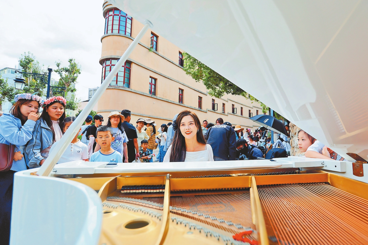 7月22日上午,大观楼畔,一曲活泼跳跃的波尔卡吸引了游客驻足欣赏;抗战胜利纪念堂和对月楼前,一阵优雅的钢琴声穿越人群,美妙的旋律引得过往市民与游客纷纷上前聆听,还有不少群众参与了演奏,在这场城市音乐盛宴中体验音乐的魅力。