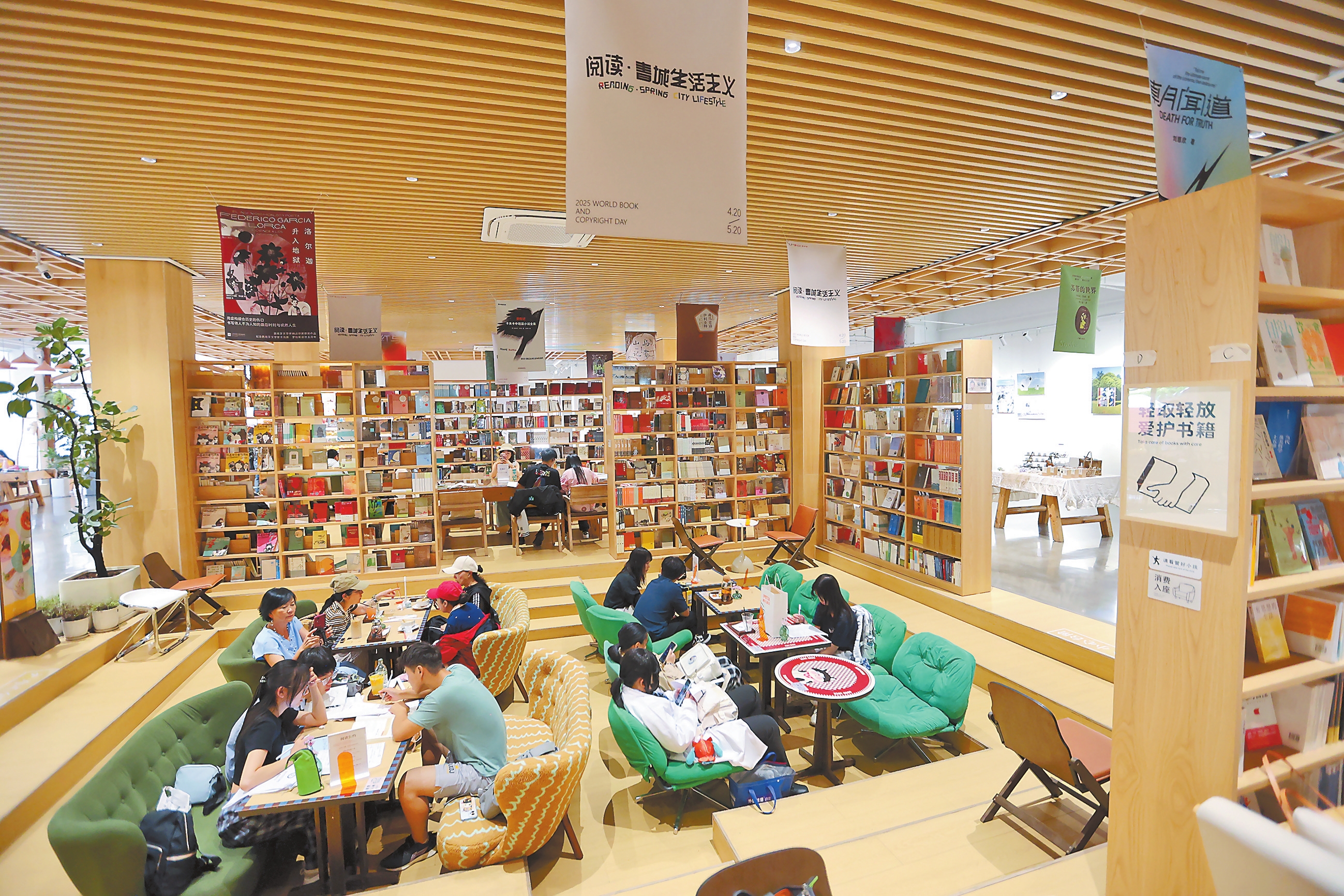 图为市民在“百里·春秋——春城会客厅”内阅读、休闲。