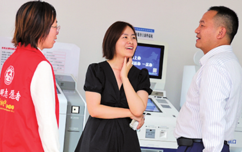 针对企业的需求,联合党支部向社区党委反映企业办证远、不便利的问题。今年3月,大观街道、顺城社区和五华区政务服务管理局联动创新服务模式,在顺城商圈党群服务中心设置“24小时不打烊”智慧政务专区,让企业员工就近就便办理社保、纳税等业务。