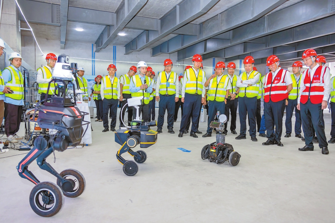 走进该项目的科技质量观摩现场,地面整平机器人沿着预设轨迹精准作业,抹灰机器人挥舞机械臂完成平整细腻的墙面处理,这些智能设备的投入,让传统建筑施工中依赖人工的环节逐步实现机械化、标准化,不仅施工效率提升50%以上,工程质量也得到显著优化;在安全管理领域,AI巡检机器人穿梭于工地各个角落,智能安全帽实时监测工人状态,塔吊安拆检测系统正时时刻刻守护着起重设备的安全运行,它们共同织就一张严丝合缝的安全防护网,为智能施工保驾护航。