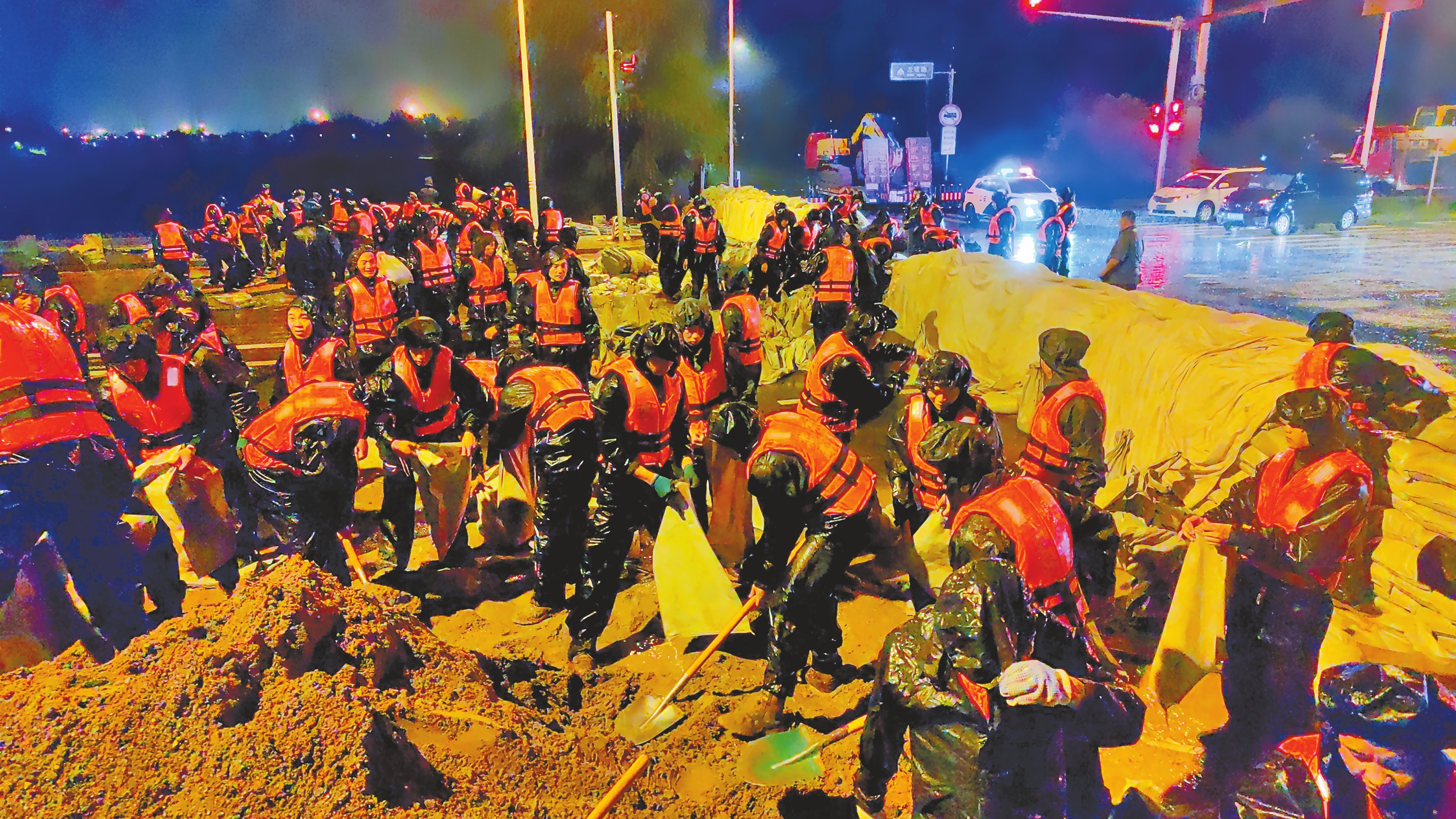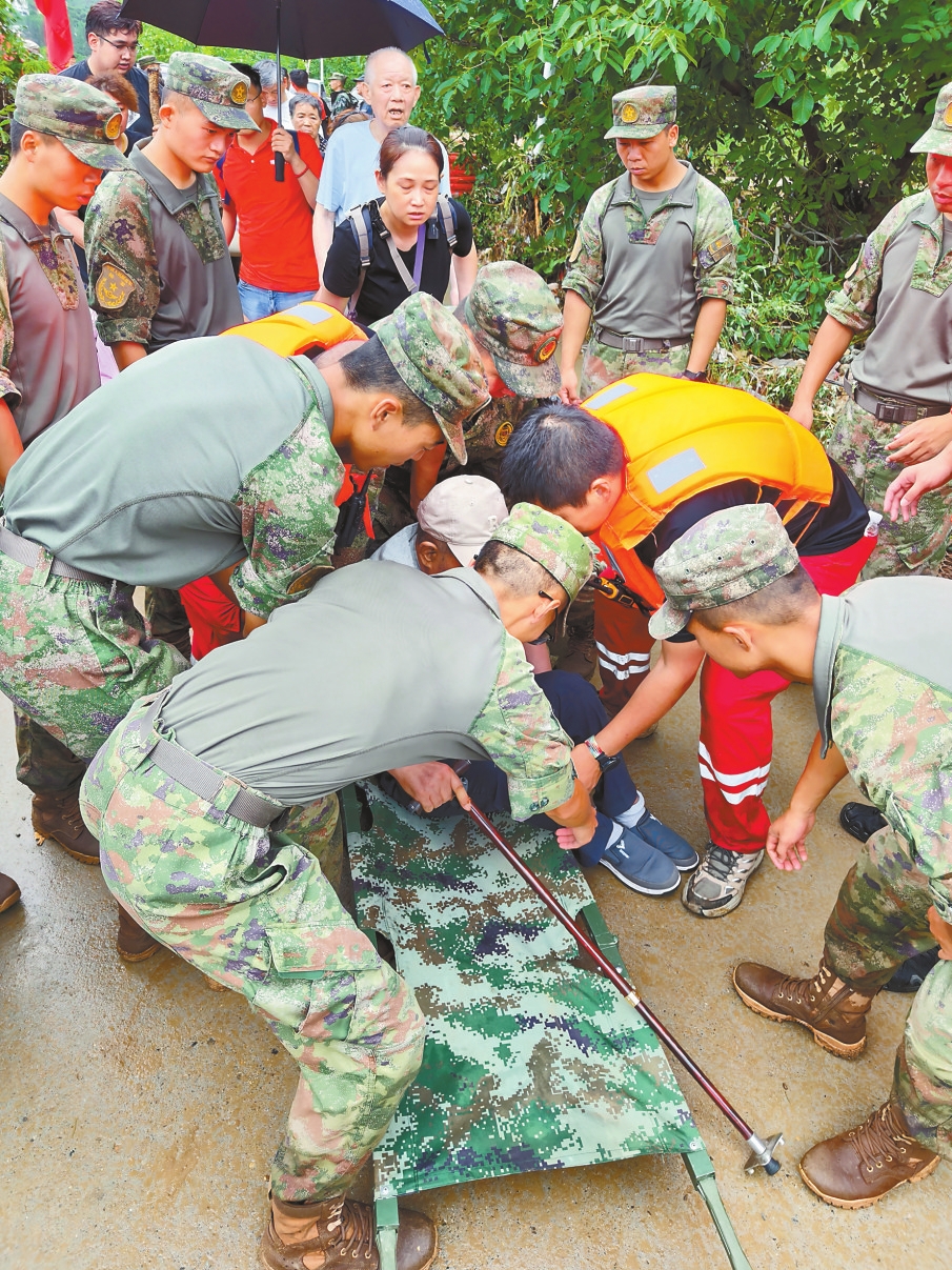 近日,华东、华北、东北等地持续遭遇强降雨,引发洪涝和地质灾害,造成重大人员伤亡和财产损失。灾情就是命令,解放军和武警部队官兵、民兵迅速出动,投入防汛抢险救灾任务。 左图为7月29日,天津警备区组织官兵和民兵在蓟州区下营镇转移受伤群众。 右图为7月28日,武警北京总队千余名官兵在密云区宁村新桥构筑堤坝。新华社发 马帅 苏鹏 摄