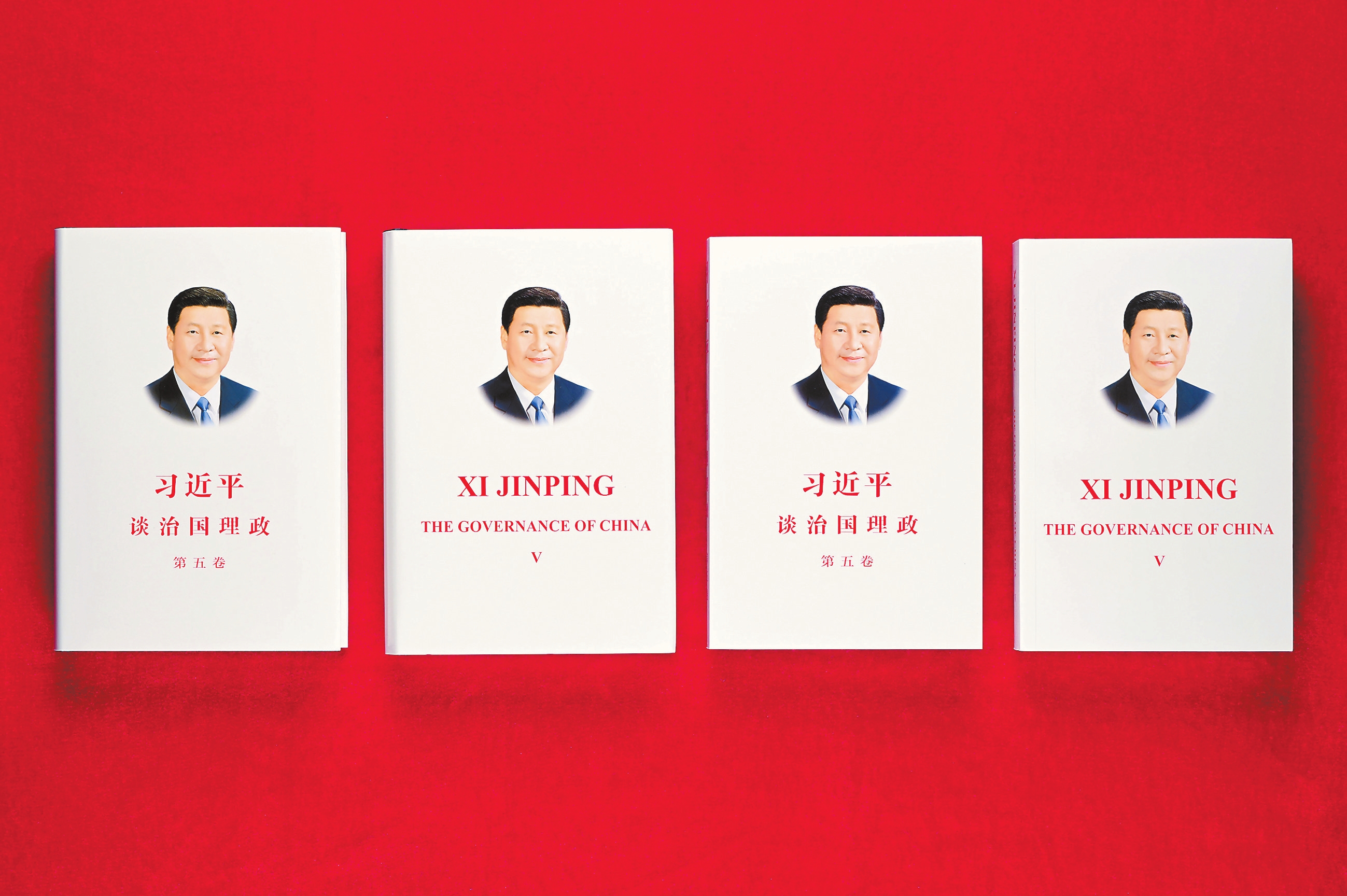 中央宣传部(国务院新闻办公室)会同中央党史和文献研究院、中国外文局编辑的《习近平谈治国理政》第五卷,近日由外文出版社以中英文版出版,面向海内外发行。 这是《习近平谈治国理政》第五卷中英文版的精装版和平装版。新华社记者 李贺 摄