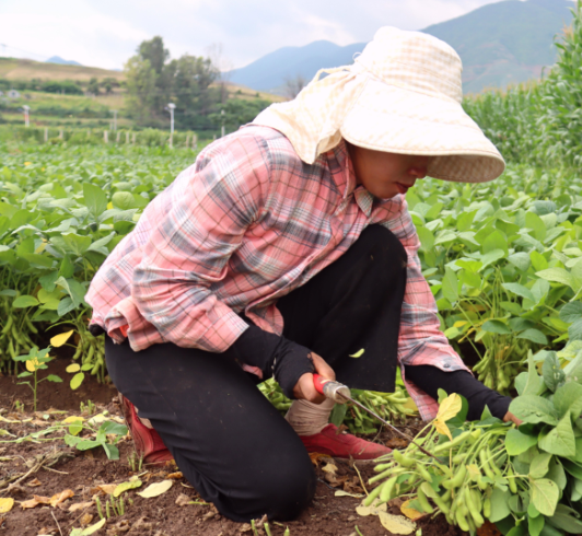 毛豆丰收季也吸引了不少周边县份群众前来务工。“我每年都会来这里摘毛豆,6月单摘毛豆就赚了3600多元,时间比较自由,既能挣钱又不耽误家里的农活。”来自南涧的务工人员高国林说。在收获季,像高国林这样来大营镇务工的季节性务工人员,每天都有近百人。