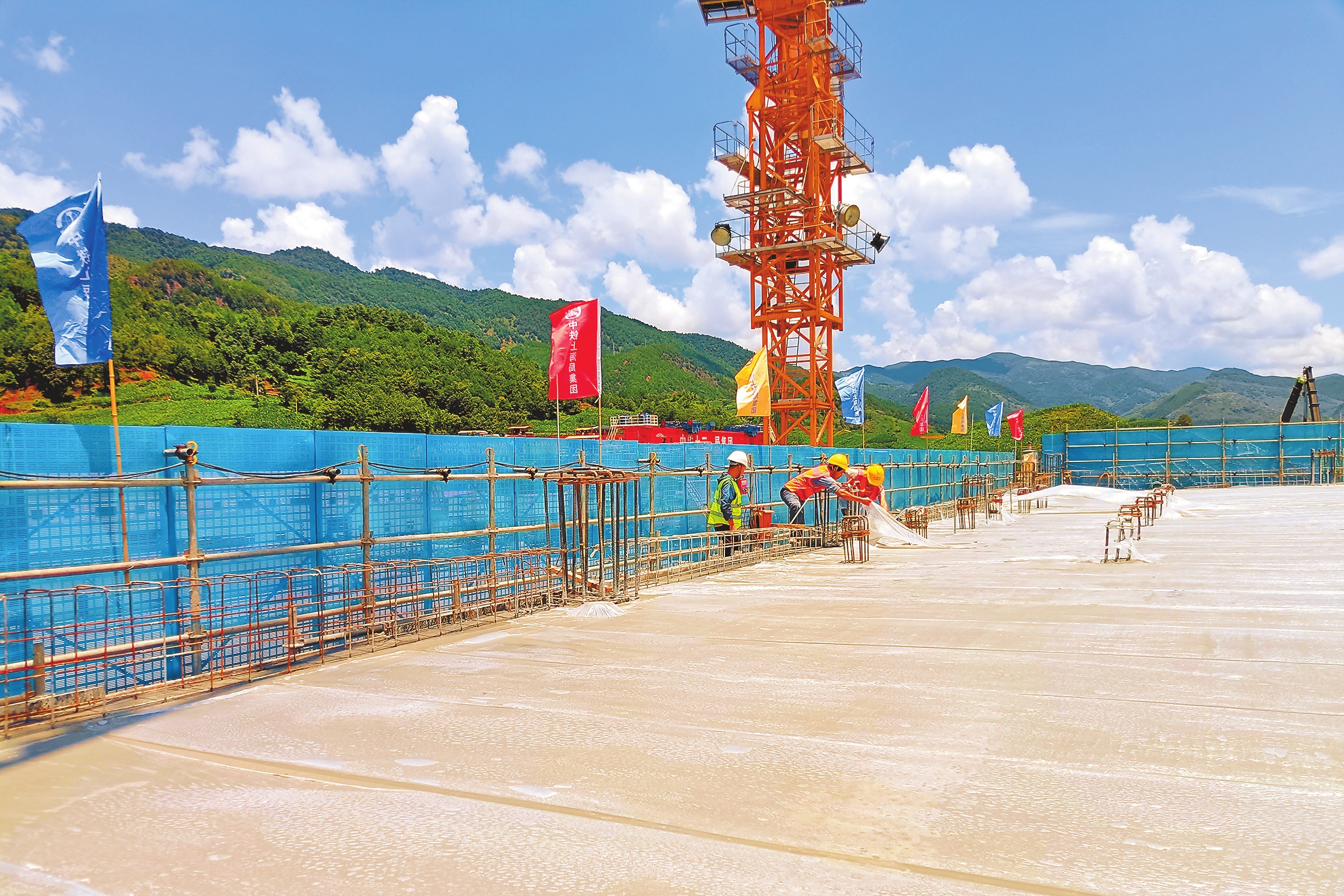该项目由中铁上海工程局承建。自项目开工以来,面对施工现场地质复杂、场地局促、雨季漫长等多重挑战,项目部依托智慧工地系统实现现场实时监控与数据分析,精准排查并解决施工问题。针对站房候车大厅的高大模板支撑体系,项目部联合行业专家及业主、设计、监理等单位召开专项评审会,确保高支模施工安全可控。同时,项目部落实安全穿透式管理要求,配齐安全管理力量,强化安全教育培训与隐患排查,为工程稳步推进筑牢安全防线。