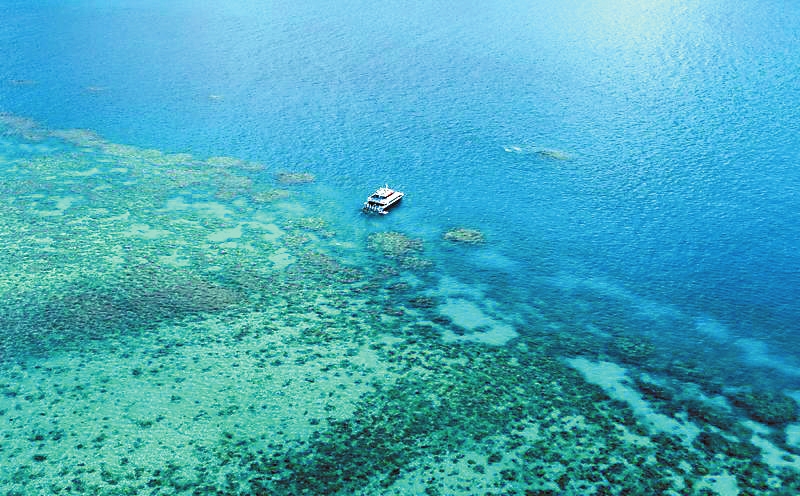 2021年6月2日在澳大利亚昆士兰拍摄的大堡礁。澳大利亚海洋学研究所6日发表报告说,受气候变化等因素的影响,大堡礁的硬珊瑚覆盖率出现大幅度下降。2025年监测区域内的硬珊瑚平均覆盖率较2024年下降约14%至30%。大堡礁珊瑚减少幅度之大创监测39年来纪录。新华社发 胡泾辰 摄