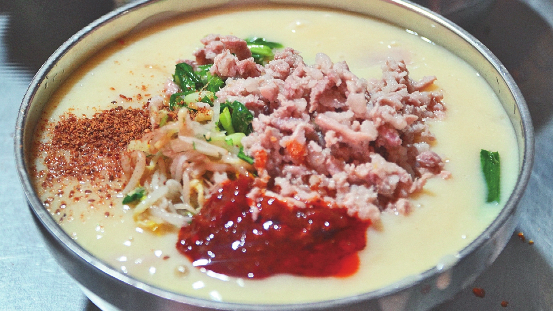 在位于八益商贸城的张记豆汤米干店里,非物质文化遗产“豆汤米干制作技艺”的传承人杨童生守着炉灶,精心熬煮豆汤,弥漫的浓郁豆香正是豆汤米干的灵魂。豆汤的熬煮十分讲究,须选用本地优质干豌豆磨成豆浆,再分次倒入滚水中持续搅拌,火候的掌握、豆汤的稠度,这些微妙的变化杨童生早已了熟于心。