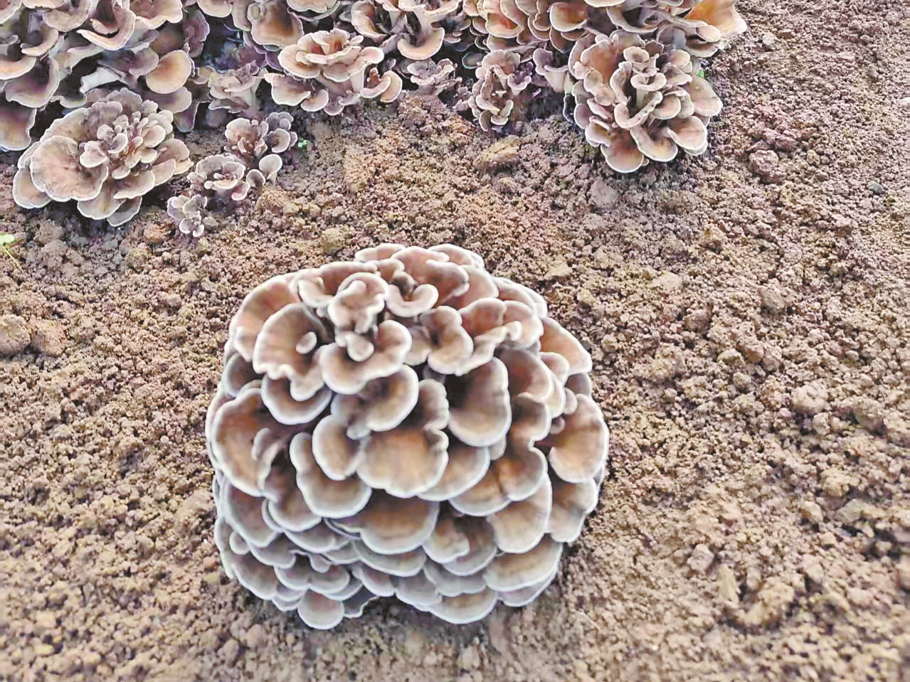 历经10年试验,合作社自主创新了“两断式更氧”栽培技术,一举突破了舞茸规模化栽培的瓶颈,使其生物学转化率从不足20%跃升至85%,在同样原料投入水平下实现了鲜菇产量翻倍增长,且品质稳定可控,为舞茸规模化种植铺平了道路。今年,合作社首批量产舞茸出菇,在400余平方米的种植区内培育的1万包菌袋已接近成熟、即将采摘,预计总产量超过2吨,当前市场价格为每公斤30元至50元,经济效益显著高于常规菇类。