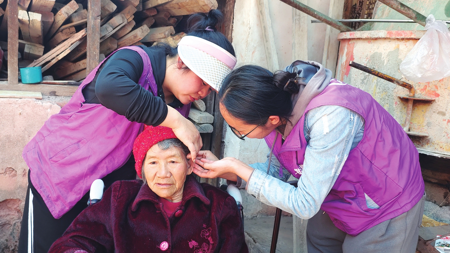 弥城镇近年来开展的居家适老化改造项目,如同一缕阳光照亮了困难老年人的生活。新城社区下小营村的杨会兰老人因视力和听力障碍,生活诸多不便。适老化改造后,安全护栏、轮椅、摄像头、助听器等设备让她的生活变得更加安全便捷。与此同时,社区管家还定期上门为杨奶奶提供健康监测、家务协助等贴心服务,让老人感受到了关怀与温暖。老人在外务工的儿媳黄爱萍动容地说:“适老化改造后,家里的设施变得更加人性化。社工们还经常上门帮忙打扫卫生,帮老人洗洗头,让出门在外的我们很放心。”