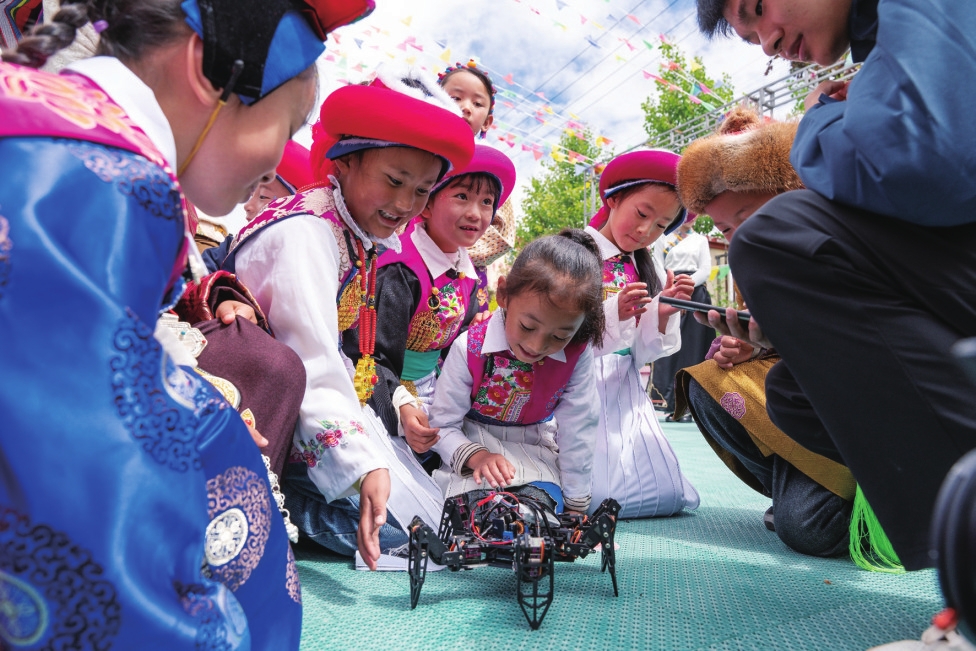 聚焦乡村振兴,实践团在三坝乡调研,在小中甸镇走访当地企业。研学之余,实践团开展科普志愿服务活动,为行动不便老人送去关爱,帮助老人体验外骨骼设备。