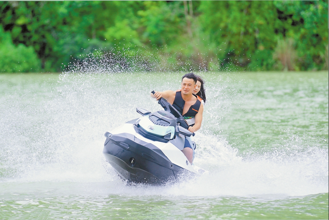 游客体验摩托艇项目。