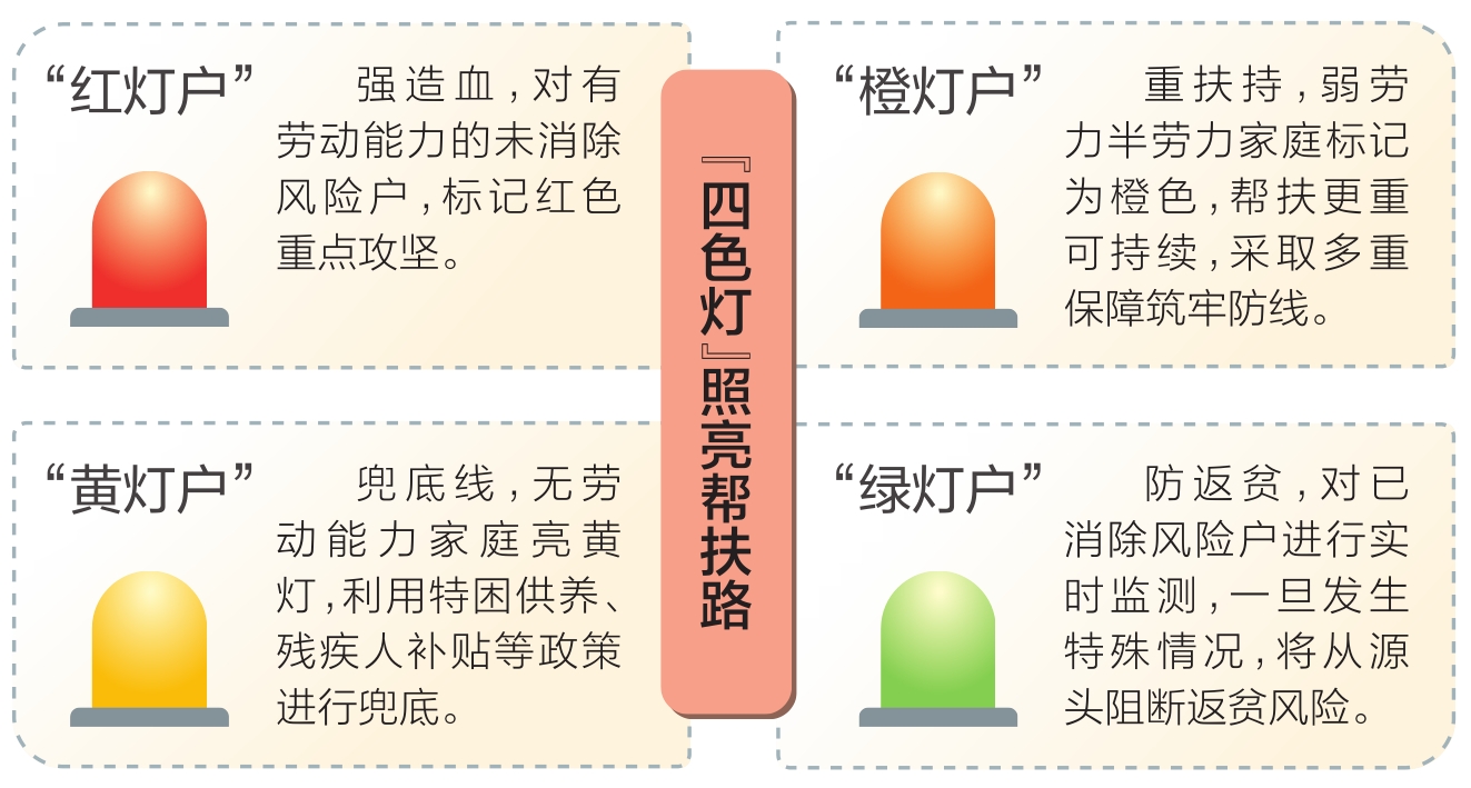 在会泽县防返贫动态监测平台上,跳动的“红橙黄绿”四色信号灯牵动人心。这套创新分类体系,让帮扶力量能够精准匹配群众需求。“四色管理背后是精密的数据支撑。”会泽县农业农村局动态监测帮扶科工作人员郗登波介绍,每户风险类型、帮扶措施、包保干部信息都在实时更新,确保监测对象不落一人。
