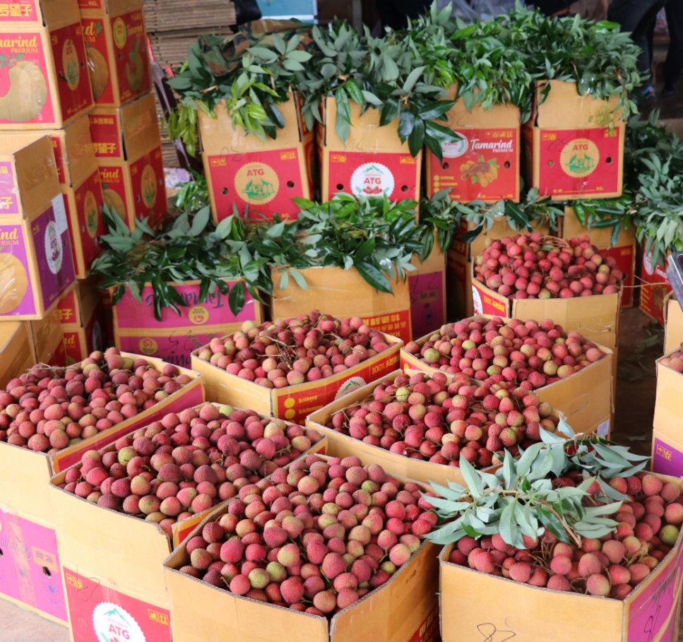 500米开外的德芳果园里,同样是一派热火朝天的景象。30余名工人正埋头分拣装箱的荔枝,园主杨培芳介绍:“荔枝季就这一个月,差不多有20多吨的产量,订单来了就喊乡亲们来帮把手。”每个荔枝季需要支付3万至5万元工钱,每天会有近30位村民领到120元的日薪。